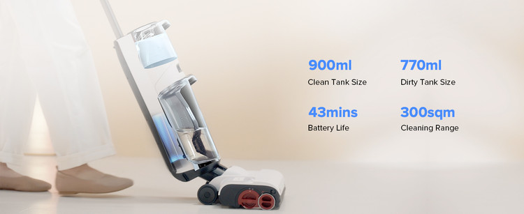 - سیستم خود تمیز شوی: Dyad Pro Combo دارای دو مخزن جداگانه آب تمیز و کثیف است و پس از هر بار استفاده، غلطکها و لولههای خود را به طور خودکار با آب تمیز شستشو میدهد و سپس آنها را خشک میکند تا از باقی ماندن آلودگی و بوی بد جلوگیری شود.