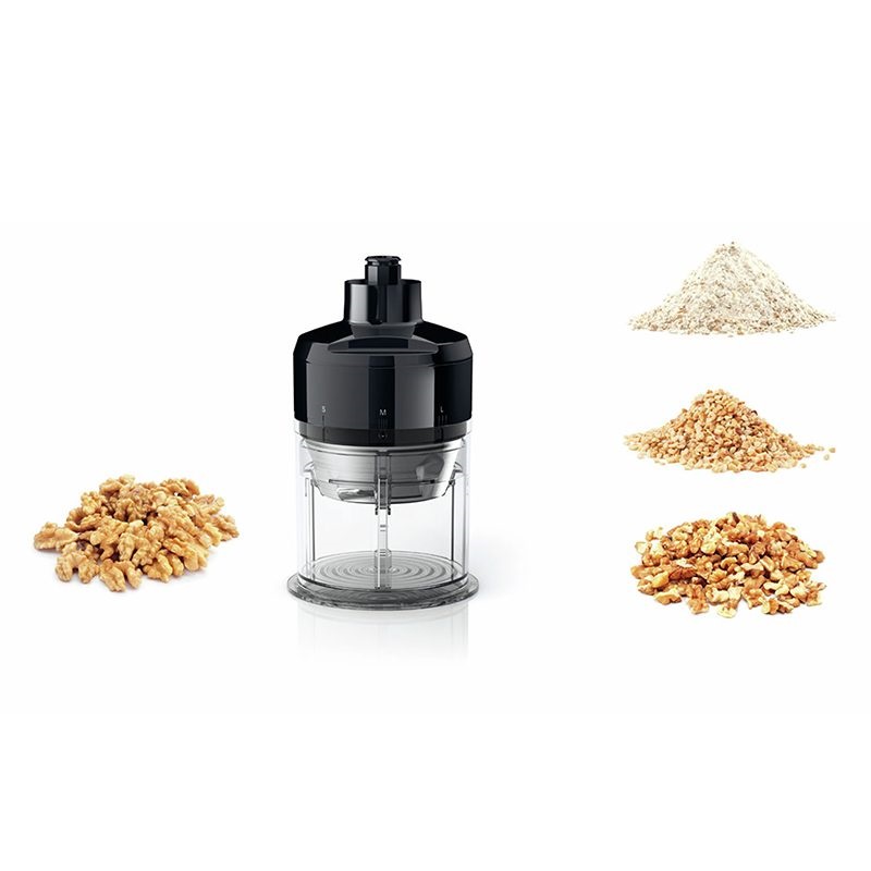 گوشتکوب برقی بوش مدل MSM881664 با موتور قدرتمند 800 وات دارای ظرف خردکن برای خرد کردن سریعتر انواع آجیل و لیوان مدرج شفاف به همراه درپوش برای مخلوط کردن و اندازه گیری مواد می باشد. قطعه بالونی از جنس استیل ضد زنگ برای هم زدن سفیده تخم مرغ، خامه یا مخلوط کردن خمیر پنکیک بکار می رود. طراحی ارگونومیک این گوشت کوب برقی با سطح SoftTouch، کار کردن با دستگاه را بسیار راحت و بی دردسر کرده است. گوشتکوب برقی بوش MSM881664 دارای سیم برق مارپیچی انعطاف پذیر می باشد. اجزا این گوشتکوب برقی با یک دکمه به راحتی از یکدیگر جدا می شوند.