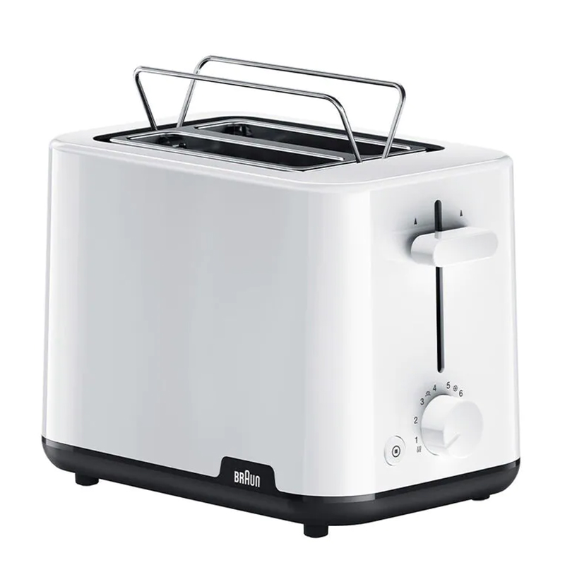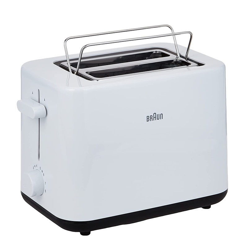 توستر براون مدل BRAUN HT1010 WH دستگاهی با طراحی ساده، کاربری ارگونومیک و عملکردی کارا گزینهای مناسب برای تکمیل تجهیزات آشپزخانه شما محسوب میشود. توان مصرفی این توستر 900 وات بوده که با برخورداری از سیستم گرمایشی المنت حرارتی قادر است فرایند تُست کردن نان را برای دستیابی به بهترین نتیجه ممکن همراه کند. برخورداری از دو درگاه متفاوت امکان انجام فرایند برشته کردن 2 قطع برش نان را مهیا کرده است. عملکردهای توستر براون مدل HT1010 علاوه بر برشته کردن نان، شامل یخ زدایی و بلافاصله برشته کردن نان منجمد و همچنین گرم کردن مجدد نان نیز میشود. گفتنی است فرایند گرم کردن نان، اشترودل و کروسان از طریق قرارگیری آنها بر روی دستههای فلزی قابل نصب بر روی درگاه انجام میشود. به لطف وجود سیستم خودکار گرمایش مرکزی با توزیع یکنواخت حرارت، هر قطع نان با ضخامت مختص به خود به طور یکدست برشته میشود. میتوانید میزان برشته شدن نان خود را انتخاب کنید؛ به وسیله توستر براون مدل HT1010 تنظیم میزان برشته شدن نان در 8 سطح متفاوت قابل کنترل است. بخش مربوط به بالابر موجب شده دستیابی به کوچکترین برشهای نان نیز میسر باشد. تعبیه پایه ضدلغزش از حرکت دستگاه در حین فرایند جلوگیری میکند. گفتنی است توستر براون مدل HT1010 در دو رنگ سفید و مشکی در سایت فروشگاه آنتیک کالا عرضه میشود.