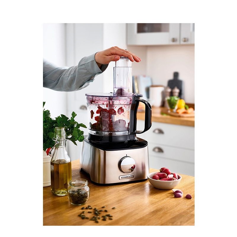 غذاساز کنوود مدل KENWOOD FDM307SS، دستگاهی پاسخ گوی چندین نیاز متفاوت و متنوع در آشپزخانه شما خواهد بود. این غذاساز چندکاره باقدرت موتور ۸۰۰ وات قابل تنظیم در ۲ سرعت از تولیدات برند معتبر کنوود است. عملکردهای متنوع غذاساز 307SS کنوود شامل مخلوطکن، آسیاب، خردکن، آب مرکبات گیری، آبمیوه گیری، همزن و خمیرزن است. کاسه غذاساز که ظرف اصلی دستگاه میباشد دارای ظرفیت 1/2 لیتر و پارچ مخلوط کن دارای ظرفیت 2/1 لیتر هستند. عملکرد متنوع غذاساز KENWOOD FDM307SS مرهون وجود دیسک هایی با مکانیزم و عملکرد متفاوت است. وجود ۳ دیسک اعم از دیسکهای برش ورقهای، دیسک خردکن یا آسیاب و دیسک چرخش معکوس به همراه تیغه S شکل از جنس استیل ضدزنگ و یک عدد کاردک ابزاری کامل برای تهیه ترکیب یا غذای مورد نظر شما خواهند بود. سیستم قفل ایمنی و درپوش مقاوم در برابر نشت مواد غذایی، عملکرد تنظیم سرعت Pulse دو مرحله ای و نگهدارنده دیسک در برابر لغزش از دیگر امکانات غذاساز کنوود مدل KENWOOD FDM307SS به شمار میآیند. با توجه به راحتی تفکیک قطعات دستگاه، شستشو در کوتاه ترین زمان امکان پذیر است.