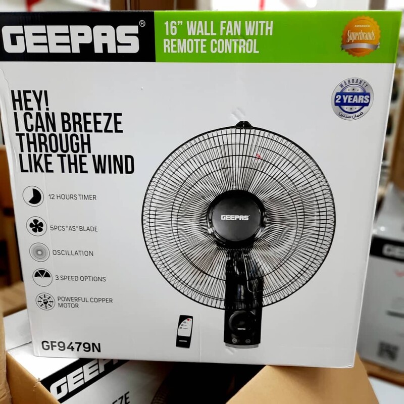 پنکه دیواری 16 اینچی Geepas - فن خنک کننده برقی قابل حمل 60 واتی برای مصارف خانگی یا اداری