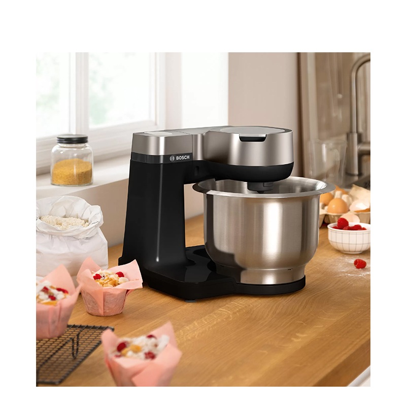 عملکردهای متنوع دستگاه از طریق اتصال اقلام مورد پیوست انجام میگیرد. اگر قصد تهیه یک کیک خوشمزه را دارید از کوچکترین فرایندها نظیر ورز دادن و به عمل آوردن خمیرهای سبک و سنگین و همچنین همزدن تخممرغ و یا خامه به لطف وجود ابزارهای همزن بالونی، ابزار امولسیون ساز و قلاب خمیرزن این امور به آسانی امکانپذیر خواهد بود. کاسه 3.8 کیلوگرمی و استیل غذاساز این ماشین آشپزخانه با امکان انجام فرایند بر روی حجمی تا 2.4 کیلوگرم مخلوط کیک و یا 1.7 کیلوگرم خمیر، آماده است تا وعده موردنظر یک خانواده پرجمعیت را فراهم کند. سیستم چرخش سه بعدی PlanetaryMixing همزن و خمیرزن در داخل کاسه سبب میشود تا کار بر روی تمامی بخشهای مواد غذایی به دقت صورت گرفته و ترکیب حاصله فاقد از هرگونه توده و سفتی باشد. تمام بخشهای پلاستیکی مرتبط با مواد غذایی در این ماشین آشپزخانه فاقد ماده شیمیایی مضر BPA بوده بنابراین ترکیبات تهیه شده دارای حداکثر سلامت و کیفیت ممکن است. در کنار طراحی زیبای این غذاساز که متناسب با چیدمان هر نوع دکوراسیون آشپزخانه است، به لطف وجود پایههای ضدلغزش، ایمنی استفاده از دستگاه در حین انجام فرایند نیز تضمین میشود. علاوه بر این تعبیه فیوز حرارتی در مواقع ایجاد گرمای بیش از اندازه، عملکرد دستگاه را متوقف خواهد کرد. تفکیک قطعات و امکان شستشوی آسان آنها پس از هر بار انجام فرایند دیگر امکان مهم ماشین آشپزخانه بوش مدل MUMS2VM00 بهحساب میآید.