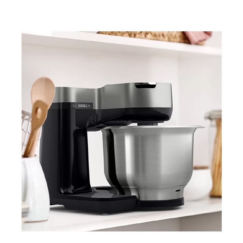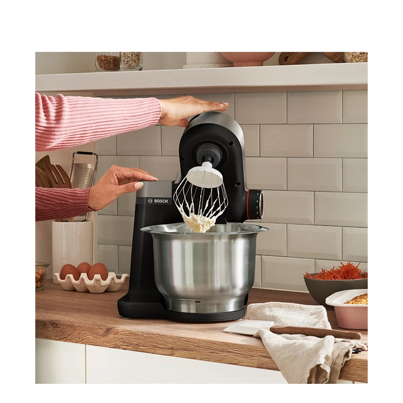 ماشین آشپزخانه بوش مدل MUMS2VM00 دستگاهی باکیفیت و بسیار کارا بوده که با برخورداری از قطعات متنوع شما را قادر میکند تا از پس چندین فرایند تهیه مواد اولیه آشپزی به آسانی بربیایید. این دستگاه با بهرهگیری از یک کاسه ۳.۸ لیتری ظرفیتی معادل تهیه ۲.۴ کیلوگرم مخلوط کیک یا ۱.۷ کیلوگرم خمیر را در اختیار شما قرار میدهد. این محصول از سری ۲ ماشین آشپزخانههای برند معتبر بوش است که دارای موتوری با توان ۹۰۰ وات بوده که امکان اعمال تنظیمات سرعت در ۷ سطح را به کاربر میدهد تا بنا بر بافت مواد غذایی و فرایند موردنظر سرعت مناسب را انتخاب کند. سه قطعه این دستگاه را همزن بالونی، همزن خامه زن و قلاب خمیرزن تشکیل میدهد.