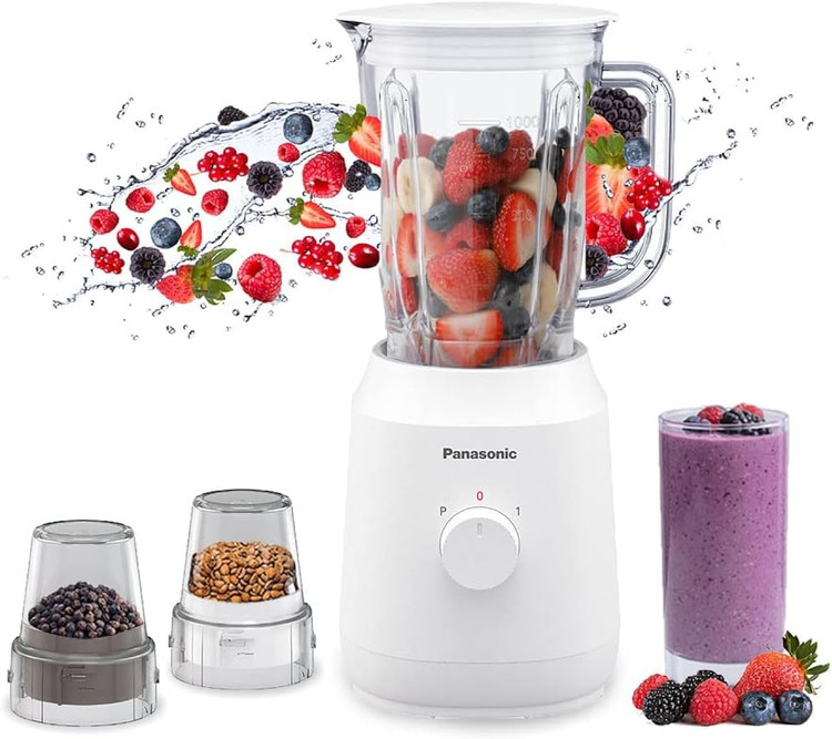 مخلوط کن پاناسونیک مدل PANASONIC MX-EX1081، دستگاهی با عملکرد دو کاره از تولیدات این برند است. موتور 450 واتی این مخلوط کن با تعداد تنظیم در دو سرعت به انضمام سرعت پالس برای انجام فرایندهای خاص قادر خواهد بود تا مواد غذایی شما را مخلوط یا آسیاب کند. این تنظیمات توسط کنترلر چرخشی تعبیه شده بر روی بدنه دستگاه به راحتی قابل اعمال است. وجود تیغههای 4 پره از جنس استیل با استحکام و دوام بالا در برابر سایش و همچنین تیزی قابل قبول و حفظ آن در مرور زمان استفاده، امکان خرد کردن و برش سختترین تهیه ترکیبی جذاب را مهیا میسازد. نیازی به تهیه آسیاب جداگانه نخواهید داشت؛ وجود دستگاه آسیاب خشک و تر کوچک شما را در آسیاب قهوه و یا انواع ادویه مثل فلفل و چیلی و سبزیجات و پیاز یاری خواهد کرد. در این آسیاب امکان تهیه 50 گرم پودر مواد غذایی وجود خواهد داشت. ظرفیت کارکرد پارچ شیشهای مخلوط کن PANASONIC MX-EX1081، به میزان 1.5 لیتر است. سطح شیشه این پارچ در برابر ایجاد خراش، بو، لکه و تغییر رنگ مقاوم میباشد. سیستم ایمنی دستگاه در هنگام عدم قرارگیری مناسب پارچ بر روی پایه، از عملکرد مخلوط کن جلوگیری میکند. طراحی زیبا و ساده در ابعادی جمع و جور این دستگاه را متناسب برای استفاده در هر دکوراسیونی از آشپزخانه کرده است. قابلیت شستشوی آسان برخی از قطعات مخلوط کن دیگر ویژگی این محصول به شمار میآید.