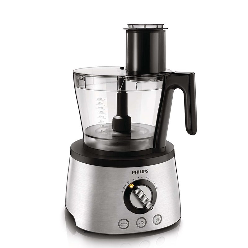 غذاساز فیلیپس مدل HR7778 با موتور قدرتمند 1300 واتی و 13 سری مختلف می تواند بیش از 30 عملکرد را برای شما انجام دهد. آب میوه گیری این دستگاه به صورت حرفه ای طراحی شده و دارای دهانه ورود میوه بزرگ است، سرعت تهیه آب میوه در آن دو برابر دیگر دستگاه ها می باشد. بدنه آبمیوه گیری از دو جداره تشکیل شده که در بخش داخلی تیغه و توری متصل به آن قرار گرفته و بخش بیرونی محل نگهداری تفاله است. آبمیوه گرفته شده از بخش داخلی توسط لوله ای که به بیرون ارتباط دارد خارج می شود. فیلتر میکرومش تهیه شده از استیل، تمام آب میوه را گرفته و در نتیجه آب میوه بیشتر و تفاله خشک تر می باشد. فیلیپس 7778 بیش از سی عملکرد دارد که شامل آسیاب، ابزار خمیر زن برای ترکیب بهتر، تیغه خردکن برای خرد کردن سبزی و گوشت، دو صفحه فلزی دو طرفه با رنده ریز و درشت، دو صفحه جهت خلال کردن سیب زمینی و میوه در دو سایز، یک صفحه تیغه ای برش دهنده با تیغه قابل تنظیم، آب مرکبات گیر، همزن دوتایی جهت تهیه مواد کیک و خامه، مخلوط کن با پارچ 1.5 لیتری و آبمیوه گیری که مهمترین بخش است، می باشد. قطعات دستگاه غذاساز HR7778 بطور کامل جدا شده و قابلیت شستشو در ماشین ظرفشویی را دارند. کاسه دستگاه دارای ظرفیت 3.4 لیتر بوده و گنجایش 2 لیتر سوپ، 1.7 کیلوگرم لبنیات و 7 سفیده تخم مرغ را دارد. موتور دستگاه دارای 12 حالت سرعت بوده و بسته به نیاز می توان از سرعت های مختلف آن استفاده کرد، همچنین می توان از حالت پالسی یا ضربه ای برای خرد کردن مواد سخت همچون یخ استفاده کرد تا فشار کمتری به موتور دستگاه وارد شود، کف دستگاه دارای 4 پایه مکشی بوده که با قرار گیری روی سطح مورد نظر به خوبی می چسبد و مانع از لغزش و لرزش هنگام کار می شود.