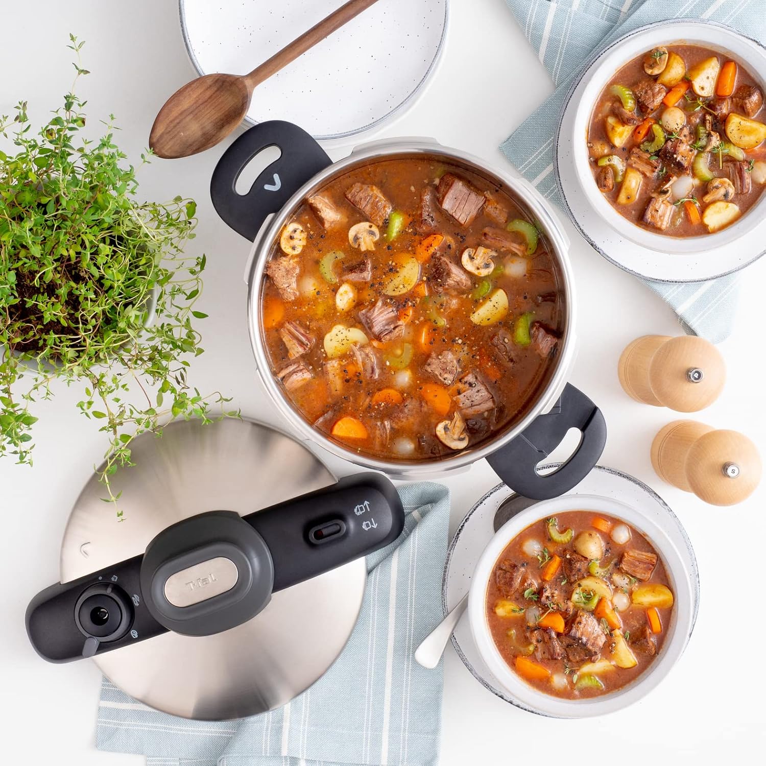 به لطف سیستم ایمنی 5 نقطه ای هوشمندانه زودپز تفال مدل P3534446 ، زودپز شما ایمنی کامل را در طول پخت کامل تضمین می کند. از دستگیره های کوتاه برای چرخاندن درب برای باز و بسته شدن آسان استفاده کنید، با یک کلیک شنیدنی که به شما اطلاع می دهد درب بسته است.
