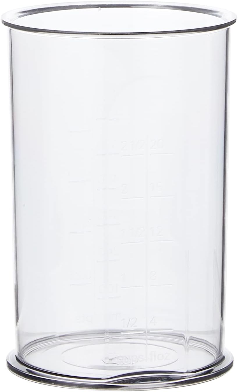 لیوان درجه بندی شفاف با ظرفیت 600 میلی لیتر و داشتن درب برای اندازه گیری، مخلوط کردن و ذخیره سازی به کار می آید. شما می توانید مواد غذایی را درون آن ریخته و سپس توسط گوشت کوب برقی له کنید. به لطف درب آن نیز می توانید سس ها یا مواد له شده خود را پس از مخلوط کردن در ظرف درون یخچال نگهداری کنید.