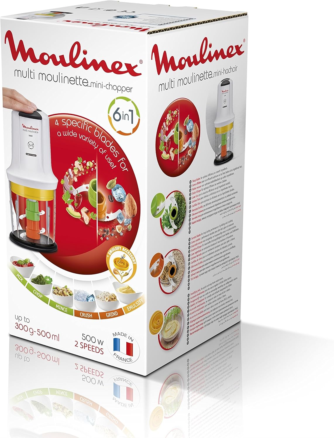 اگر قصد تهیه لوازم آشپزخانه را دارید، حتما با خرد کن مواجه شدهاید. خردکن کارایی بسیاری دارد. خردکنهای برقی دستگاههایی جمع و جور، سبک وزن و دستیاری خوب در آشپزخانه هستند که با راحت تر نمودن پروسه خردکردن مواد غذایی موردنیاز در تهیه سریع غذا کارایی دارند. اگر قصد تهیه خردکن دارید، خردکن مولینکس مدل AT723110 یکی از گزینههایتان است. این مدل در ابعاد 105 × 105 × 260 میلیمتر و وزن 0.950 کیلوگرم به بازار عرضه شده است. این طراحی سبب شده تا این مدل فضای زیادی اشغال نکند. ریز کردن سبزیجات و میوه جات و… در سایز کوچک و بزرگ. هر چه زمان بیشتری از دستگاه برای خرد کردن استفاده کنید مواد غذایی ریزتر می شوند. این محصول کاربردی مدت زمان تهیه مواد اولیه غذا را کاهش می دهد، درنتیجه زمان و انرژی بیشتری برای شما ذخیره می کند. توانی که برای این مدل در نظر گرفته شده 500 وات است. تیغه این محصول 4 پره است. تعداد تنظیمات سرعت این مدل 2 حالت است.