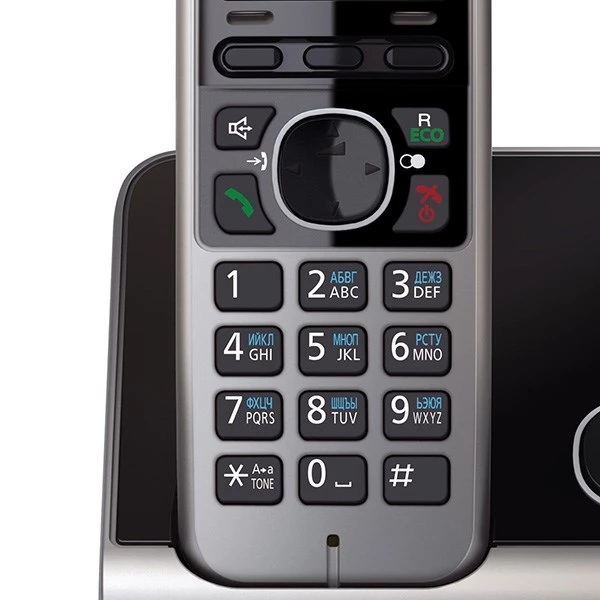 تکنولوژی ECO باعث میشود تا زمانی که گوشی و دستگاه پایه در فاصله نزدیکی از هم قرار دارند، سیگنالهای تولید شده توسط تلفن کمتر شوند. این اتفاق در نهایت، منجر به کاهش قابل توجه مصرف باتریها و افزایش عمر مصرفی آنها خواهد شد. برای فعال کردن این قابلیت، کافیست کلید R را که در صفحه کلید گوشی بیسیم مشاهده میکنید، فشار دهید.