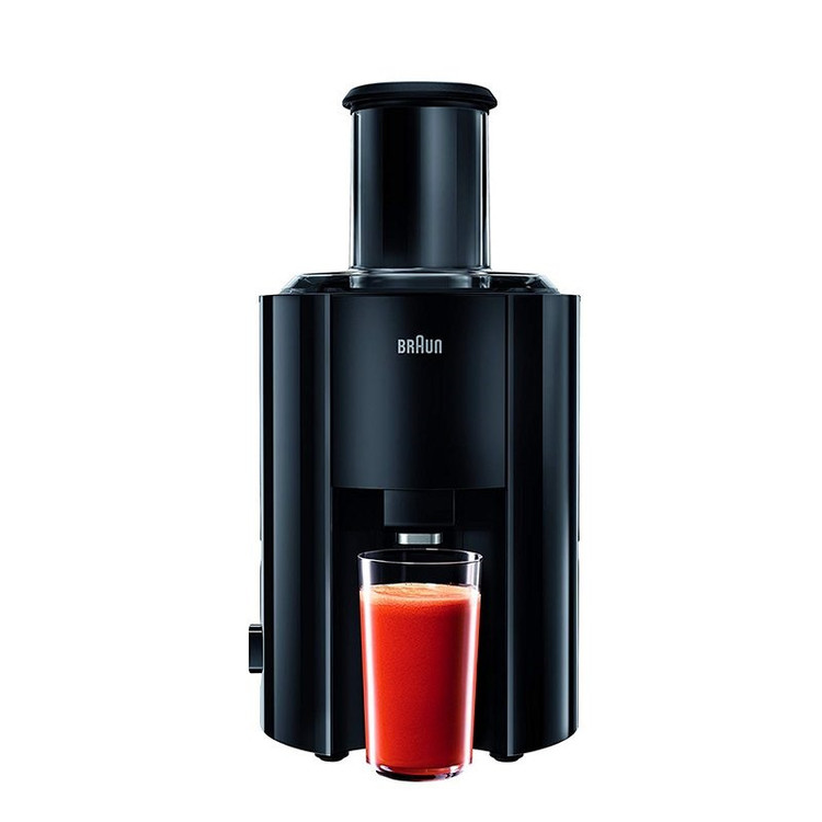 آبمیوه گیری براون مدل J300 با توان 800 وات دستگاهی با طراحی منحصر به فرد می باشد. این دستگاه مجهز به دو سرعت مختلف برای میوه های نرم و سفت می باشد. سرعت کم مناسب برای آب گیری میوه های نرم مانند هندوانه، انگور و خیار می باشد و سرعت زیاد برای آب گیری میوه های سفت مانند سیب و هویج است. جهت آبگیری بهتر و دقیق تر صافی دستگاه از استیل طراحی شده که به هیچ عنوان از بین نمی رود. آبمیوه گیری J300 دارای دهانه ورودی بزرگ 75 میلی متری است که سبب می شود بدون برش زدن، میوه ها را به صورت کامل درون دستگاه ریخته و با دسته فشاری آن ها را به سمت فیلتر هدایت کنید. پارچ این دستگاه کاملا منطبق با دهانه آبمیوه گیری قرار می گیرد و از ریختن آب میوه روی سطوح جلوگیری می کند. این پارچ مجهز به بدنه مدرج و ظرفیت 1.25 لیتری می باشد. در ضمن پایه های ضد لغزش زیر بدنه از سر خوردن دستگاه هنگام روشن بودن جلوگیری کرده و کار با آن را برای شما آسان می نماید.