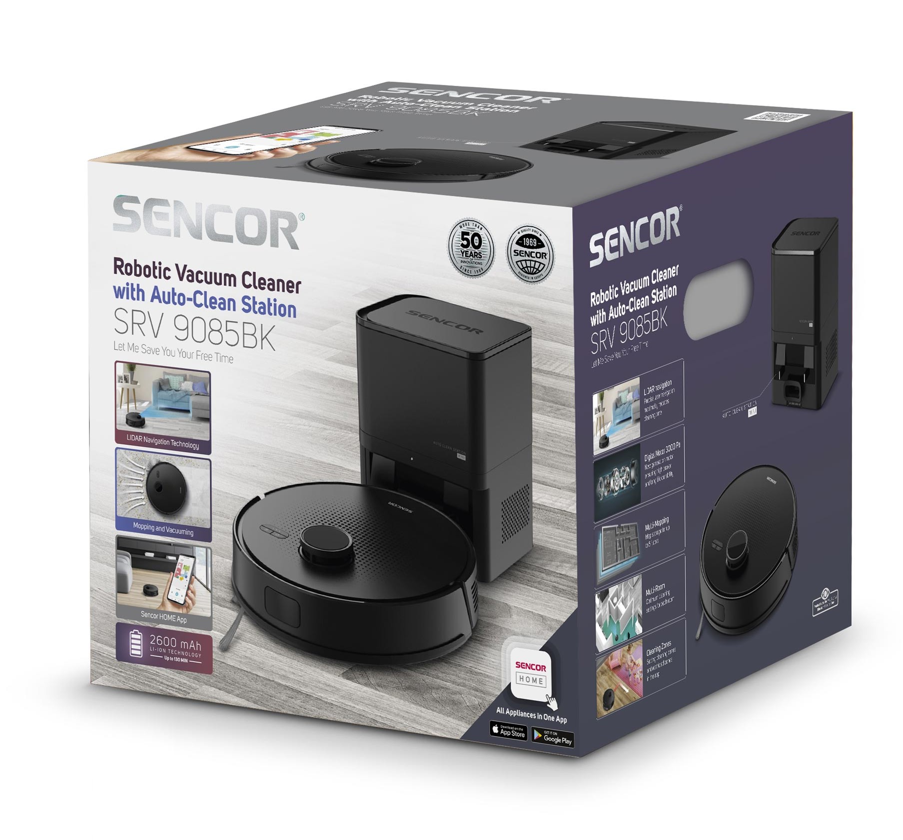 - جاروبرقی رباتیک هوشمند Sencor SRV 9085BK از تمیز کردن کف و فرش های سخت مراقبت می کند.