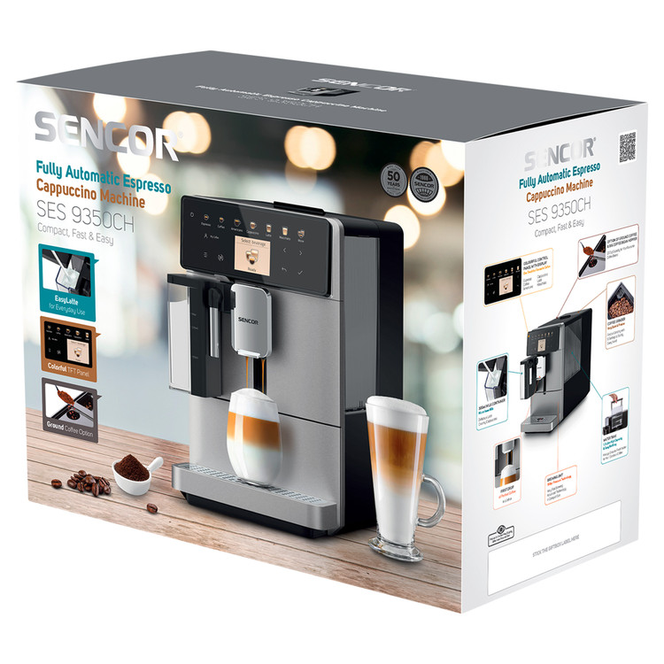 اسپرسوساز سنکور مدل SES-9350 با طراحی زیبا و فناوری پیشرفته، مناسب کسانی است که به دنبال تهیه قهوه باکیفیت در خانه یا محل کار هستند. این دستگاه دارای فشار پمپ 19 بار بوده که عصارهگیری کامل و طعم غنی قهوه را تضمین میکند. سیستم EasyLatte با ظرف شیر 300 میلیلیتری امکان تهیه فوم نرم و خامهای برای کاپوچینو و لاته را فراهم میآورد. صفحهنمایش LCD رنگی و کاربری آسان، امکان انتخاب از بین 15 نوع نوشیدنی، از اسپرسو تا فلتوایت را با یک لمس میسر میسازد.