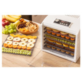 میوه خشک کن سنکور مدل sfd 6500wh، دارای 6 سینی یا به اصطلاح 6 طبقه است. جنس سینی ها از پلاستیکی فشرده و مقاوم در برابر حرارت است. سینی ها دارای روزنههای ریزی هستند که خشک شدن و جزیان حرارت را تسهیل میکنند. سینی ها هر کدام ابعاد 30*33 سانتی متری دارند. شما همچنین قادر خواهید بود که سینی ها را جدا کرده و اقدام به تمیز کردن و نظافت آن ها بکنید. لازم است بدانید که ارتفاع سینی ها از هم دو سانتیمتر است و در قرار دادن برش های بزرگ دچار مشکل نخواهید شد. در صورتی که آیتم مورد نظرتان ارتفاع زیادی داشته باشد نیز میتوانید سینی های بالاتر را حذف کرده و به آسانی آن را درون دستگاه جای دهید.