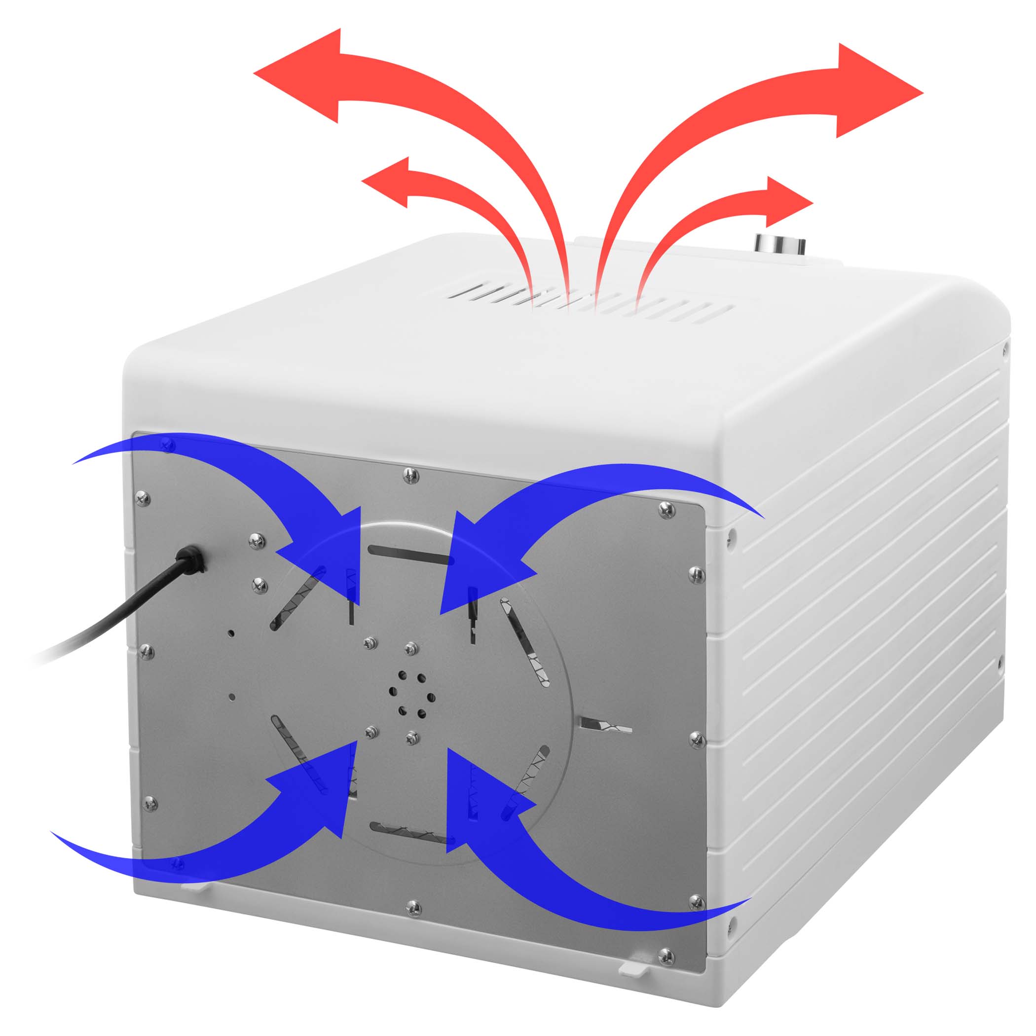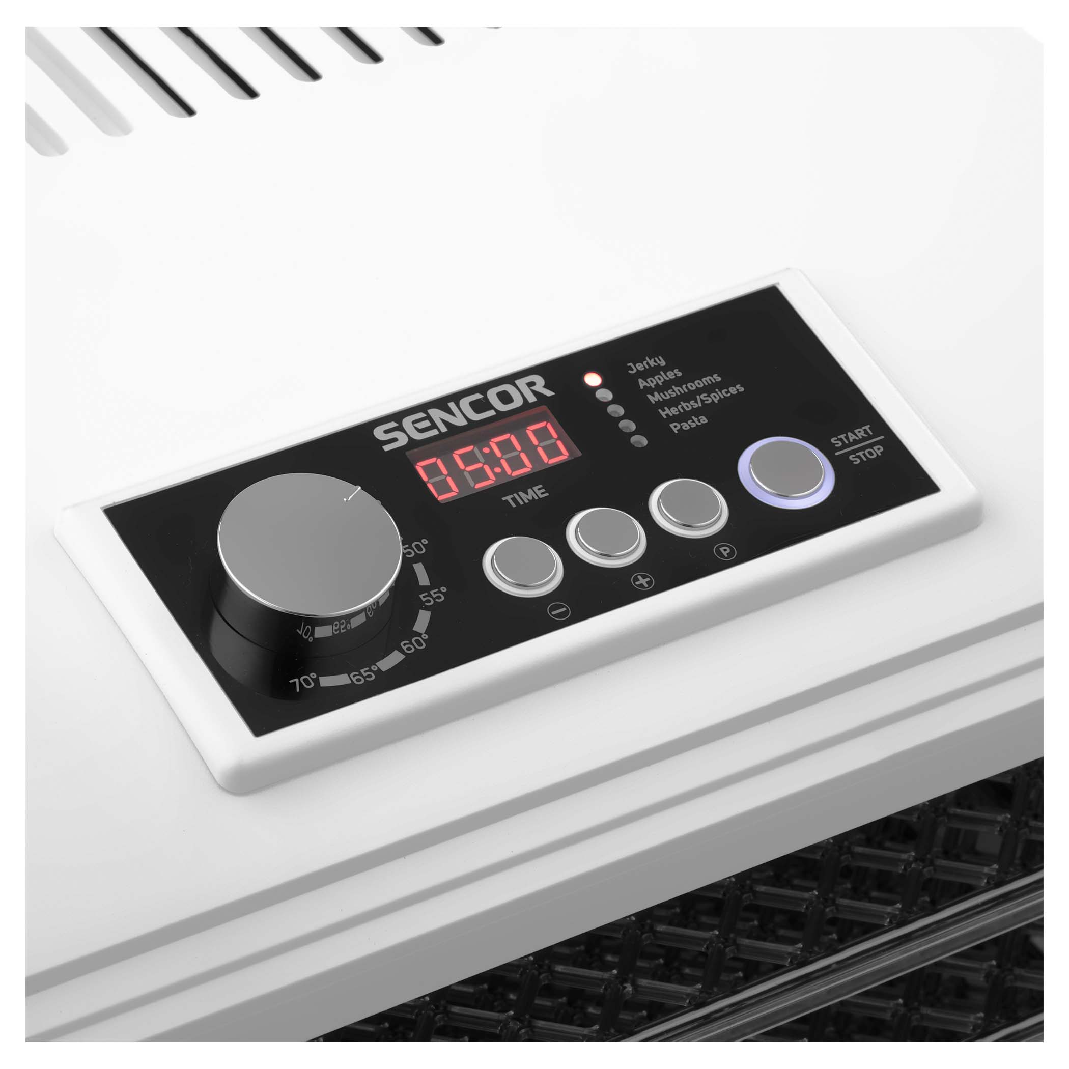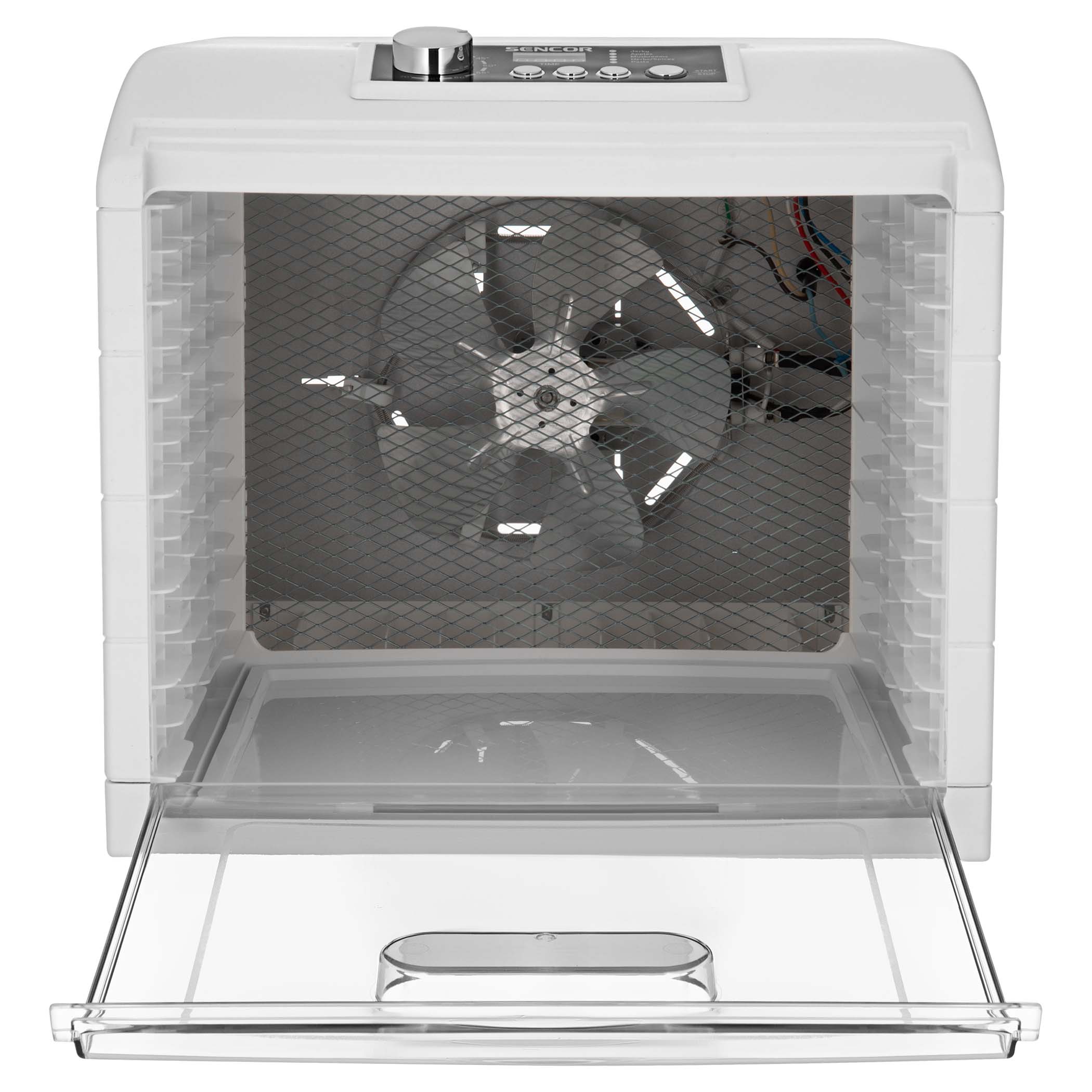 همانطور که گفتیم این دستگاه توان 500 واتی دارد. با این توان قادر است دمایی در محدوده 35 تا 70 درجه سانتیگراد را تولید کند. المنت های این میوه خشک کن در قسمت پشتی قرار دارند و دما را به طور یکسان به همه طبقات میرسانند. البته یک فن نیز با پروانه 17 سانتی متری در پشت قرار گرفته است که هوای گرم المنت ها را در داخل میوه خشک کن به جریان در آورده و سرعت کار را بالا میبرد. سنکور همچنین برای جلوگیری از گرم شدن بیش از حد دستگاه، از یک ترمال فیوز بسیار موثر و کارآمد بهره گرفته است.