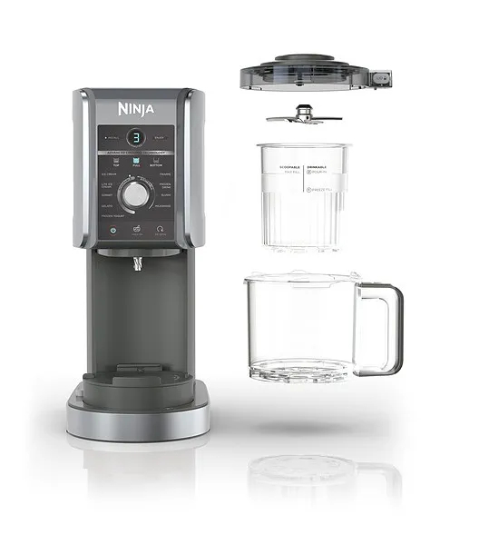 بستنی ساز نینجا مدل Nc501 از طراحی خاص و مدرن به رنگ نقره ای نظر شما را به خود جلب می کند و در کنار کیفیت و کارایی عالی که دارد به محصولی مفید و ارزشمند تبدیل شده است. برروی بدنه یک کنترل پنل لمسی طراحی شده که می توانید توسط آن به سادگی تنظیمات دستگاه را انجام دهید.