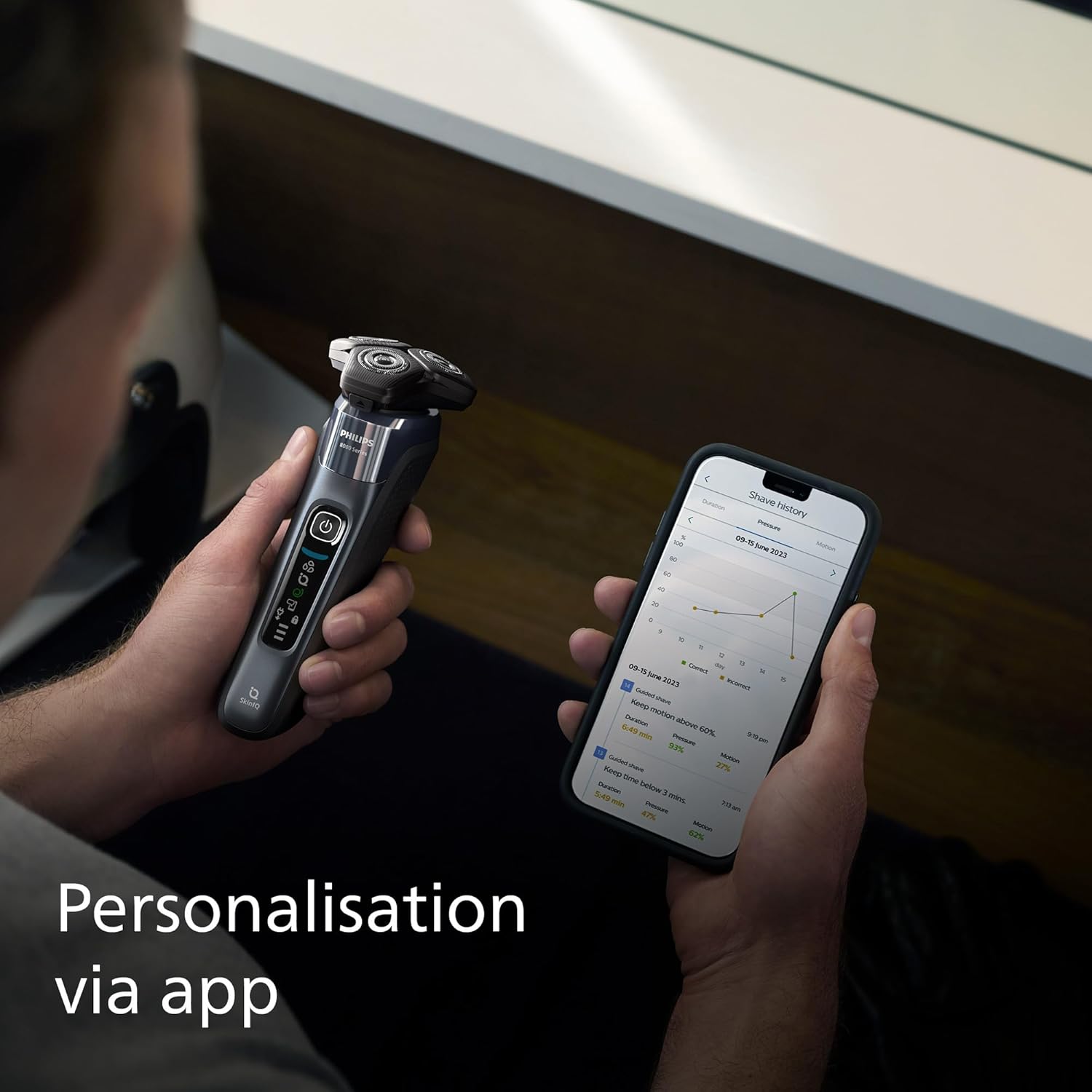 تراش خود را با جفت کردن ریش تراش خود با برنامه Philips Groomtribe کامل کنید. با تراشیدن ، پیشرفت پوست خود را پیگیری کنید ، تراش خود را شخصی سازی کنید و تکنیک خود را برای یک تراشیدن به همان اندازه نزدیک به پوست تسلط دهید.
