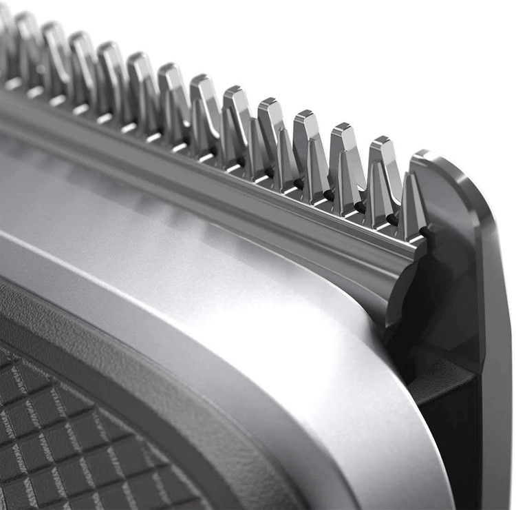 یکی از ابزارهای تعبیه شده در بین اقلام پرشمار این محصول، قطعه سری شانه قابل تنظیم است. این قطعه در محدوده 1 تا 3 میلیمتر و در 11 درجه قابل تنظیم است که در حین فرایند اصلاح بدون نیاز به تعویض و استفاده از شانههای متعدد، با تنظیم روی نشاتگر عددی موردنظر، ابعاد دلخواه را برای کوتاه کردن موها در اختیار شما قرار میدهد.