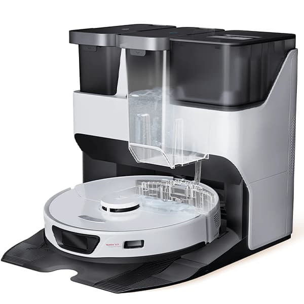 Roborock S7 Max Ultra به مخازن مستقل و با ظرفیت بالا مجهز است که شامل یک مخزن آب با حجم 200 میلیلیتر و یک مخزن زباله 400 میلیلیتری میشود. مخزن آب این دستگاه از نوع الکترونیکی بوده و جریان آب را بهصورت دقیق کنترل میکند تا از نشتی یا ایجاد لکه روی زمین جلوگیری شود. علاوه بر این، این جارو رباتیک از سیستم خودتخلیه هوشمند پشتیبانی میکند که مخزن زباله دستگاه را به صورت خودکار به مخزن بزرگتر در داک شارژ منتقل میکند، و نیاز به تخلیه دستی را به حداقل میرساند.