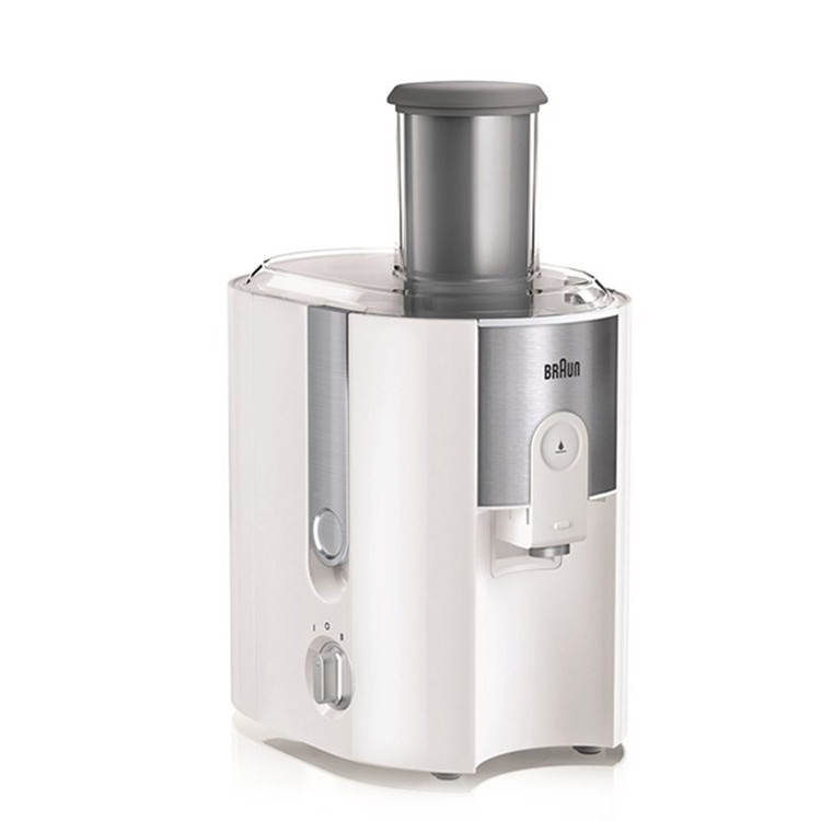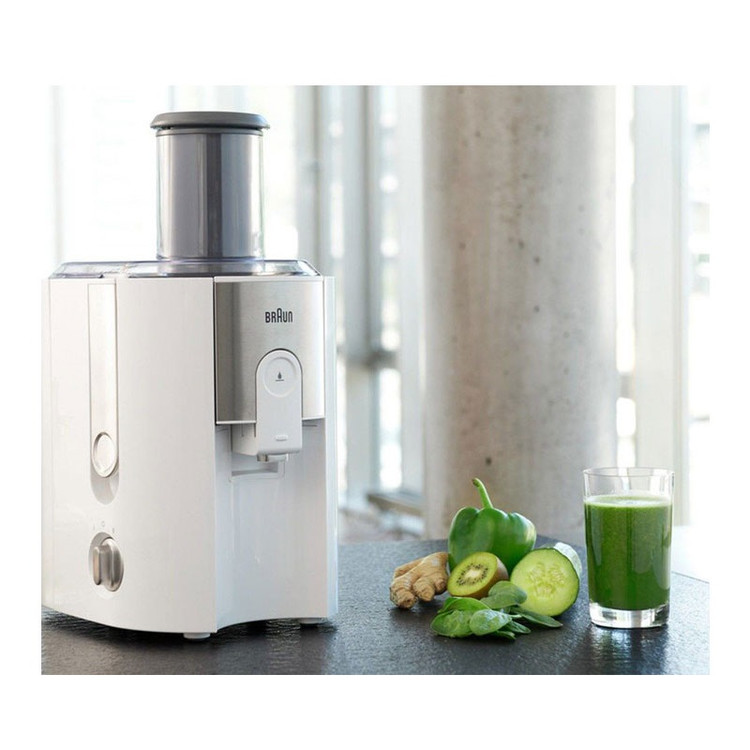 آبمیوه گیری براون مدل J500 با ظرفیت بالایی که دارد هرروز به کار میآید تا نوشیدنی تازه و گوارا و طبیعی تهیه کند. این دستگاه با دارا بودن مخزن تفاله به گنجایش 2 لیتر میتواند برای مدت طولانی کار کند و نیاز به قطع فعالیت به خاطر خالی کردن تفاله ندارد. تیغه اصلی از جنس استیل ضدزنگ است و دهانه دستگاه نیز از قطر مناسب برای گرفتن آب قطعات بزرگ میوه برخوردار است و میتواند انواع میوهجات را بدون آنکه نیاز به خرد کردن آنها باشد، همچون سیب کامل و خرد نشده آبگیری نماید. علاوه بر فیلتر دستگاه که به راحتی قابل شستشو میباشد، لوازم جانبی نیز قابلیت شستشو در ماشین ظرفشویی را دارند. از جمله لوازم جانبی میتوان به پارچ مخزن برای آبمیوه که شفاف و دارای درجه بندی است، و همچنین مخزن تفاله آبمیوه گیری اشاره نمود که به راحتی میتوان آنها را پس از پرشدن از دستگاه جدا نموده و با توقفی کوتاه آنها را خالی و برای ادامه آبگیری روی دستگاه نصب نمود. دهانه خروجی به صورت ضد چکه طراحی شده و پس از اتمام کار به صورت چرخشی مانع از چکیدن آب میوه میگردد. دستگاه مجهز به سیستم ایمنی داخلی بوده که در صورت گرم شدن بیش از حد فعال گردیده و وسیله را خاموش می کند و پس از خنک شدن می توان دوباره مورد استفاده قرار دهید.