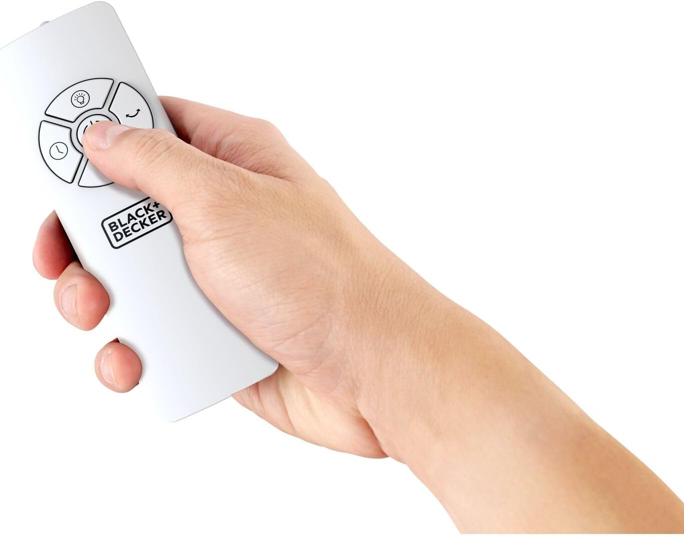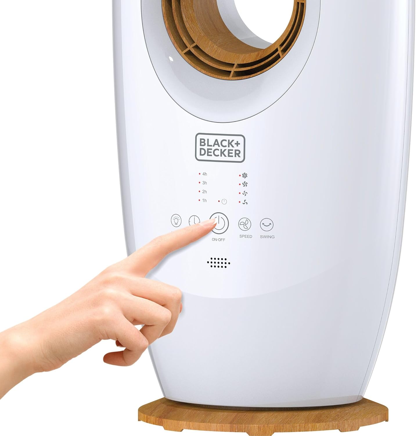 BLACK + DECKER 2 در 1 فن بدون پره، 85 سانتی متر، موتور تروپیکال 70 وات، لامپ LED سرد-سفید، کنترل از راه دور، نوسان عریض 60 درجه، کم صدا، تزئینات چوبی، روکش 40 متر مربع، سفید - FBL85-B5