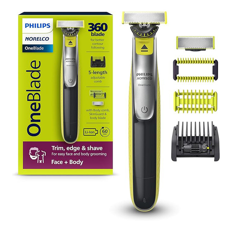 فناوری OneBlade: برای اصلاح راحت تر موهای صورت و بدن با برش سریع (200 بار در ثانیه) با یک سیستم حفاظتی دوگانه