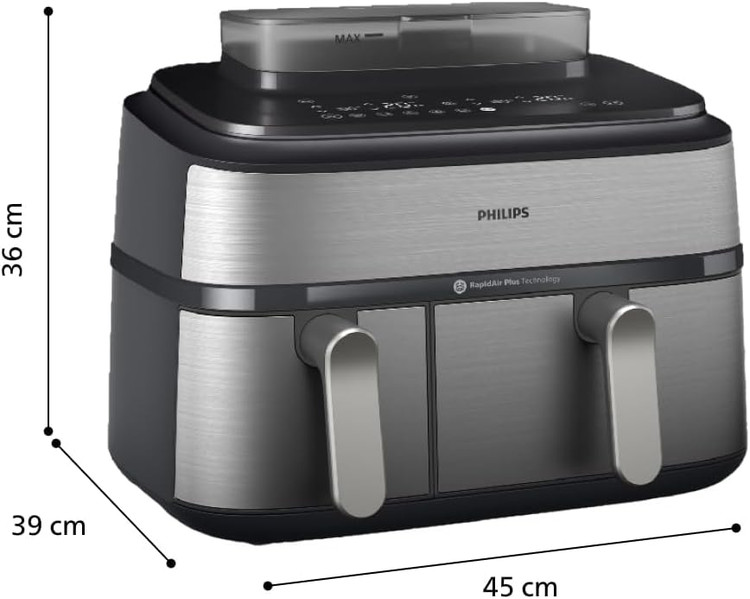 سرخ کن دوقلو فیلیپس با یک ظاهر نسبتا متفاوت نسبت به مدل های قبلی، با بدنه ای استیل عرضه شده که در جای خود بسیار جالب است. این دستگاه در اواسط 2025 روانه بازار شده و همچنان در کنار مدل na350 از همین برند، بعنوان بزرگ ترین هواپز philips شناخته میشود.