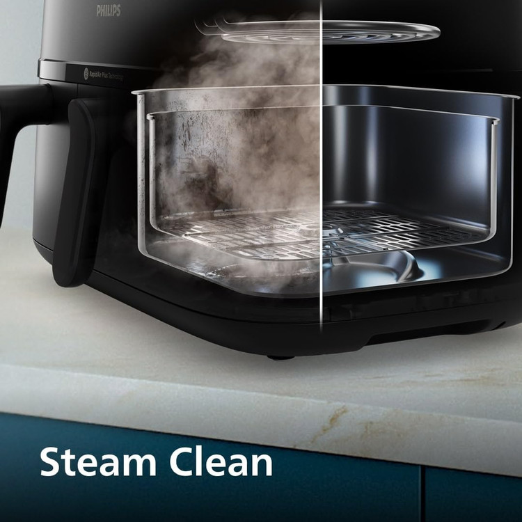 با وجود مخزن آب در بالای دستگاه، کمپانی فیلیپس قابلیتی را در این دستگاه تعبیه کرده تا بصورت خودکار و با کمک بخار، فرایند نظافت مخزن انجام شود. به این صورت دیگر نگران چسبیدن چربی ها و یا ته مانده مواد غذایی به سبد یا مخزن نباشید.