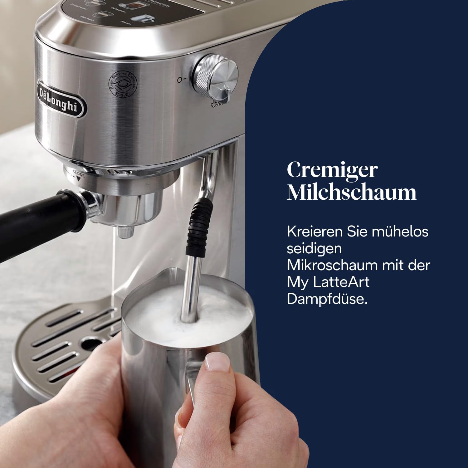 EC890 از نازل بخار استیل حرفهای بهره میبرد که قابلیت تنظیم جریان بخار را دارد. چه بخواهید فوم شیر ضخیم برای کاپوچینو بسازید و چه شیر مخملی برای لاته، این نازل به شما آزادی کامل در طراحی شیر میدهد.