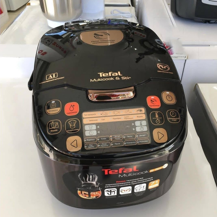 مولتی کوکر تفال مدل TEFAL RK9018، یک انتخاب هوشمندانه برای پخت غذاهای متنوع با توان مصرفی چشمگیر ۷۵۰ وات از تولیدات این برند معتبر است. کارکرد چندکاره این مولتی کوکر در قالب آرامپز، بخارپز و پلوپز، پخت انواع خورشت و سرخ کن انجام میگیرد. ظرفیت کاسه این دستگاه ۵ لیتر بوده و برای آمادهسازی حداکثر وعده ۱۰ نفره مناسب است. همچنین جنس این کاسه از آلومینیوم با پوشش سرامیک 6 لایه با ضخامت ۲ میلیمتر میباشد. وجود 71 برنامه پیش فرض برای تهیه آسان وعدههای روزانه از قبیل پخت غذا، تفت دادن، تهیه سوپ، خورشت، آرامپز، بخارپز، برنج، برنج سوشی، برنج ریزوتو، جوی دو سر، دامپلینگ، پاستا، پخت نان، غذای کودک، استریلیزه کردن، املت، دسر، ماست ساز، مربا و مارمالاد و گرم نگهداشتن دیگر امکان هیجان انگیز مولتی کوکر RK9018 تفال است. قابلیت پخت با تأخیر و نگهداری دما تا ۲۴ ساعت، تایمر قابل تنظیم و صفحه کنترل LED با وضوح بالا از دیگر امکانات این دستگاه است. گفتنی است اقلام جانبی TEFAL RK9018 شامل بازوی محرک، قاشق و پیمانه برنج، سبد بخارپز و دفترچه دستور پخت غذا میباشد. توجه شود پنل این دستگاه به زبان روسی میباشد.