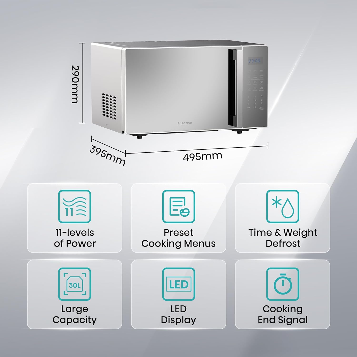صفحه نمایش LED - صفحه نمایش LED آبی طراحی جهانی دستگاه هایسنس را به ارث برده است که خواندن و کارکرد آن آسان است. دارای عملکرد تایمر پخت و پز است و زمان کار نکردن اجاق مایکروویو را نشان می دهد.