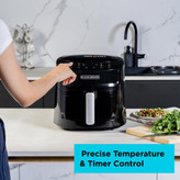 دیگر نیازی به بلند کردن سبد برای بررسی وضعیت غذا نیست. پنجره دید جادار، به همراه یک لامپ حفرهای، به شما امکان میدهد وضعیت پخت خود را به راحتی بررسی کنید. این عملکرد به ثابت نگه داشتن دمای پخت و تضمین نتایج یکنواخت کمک میکند