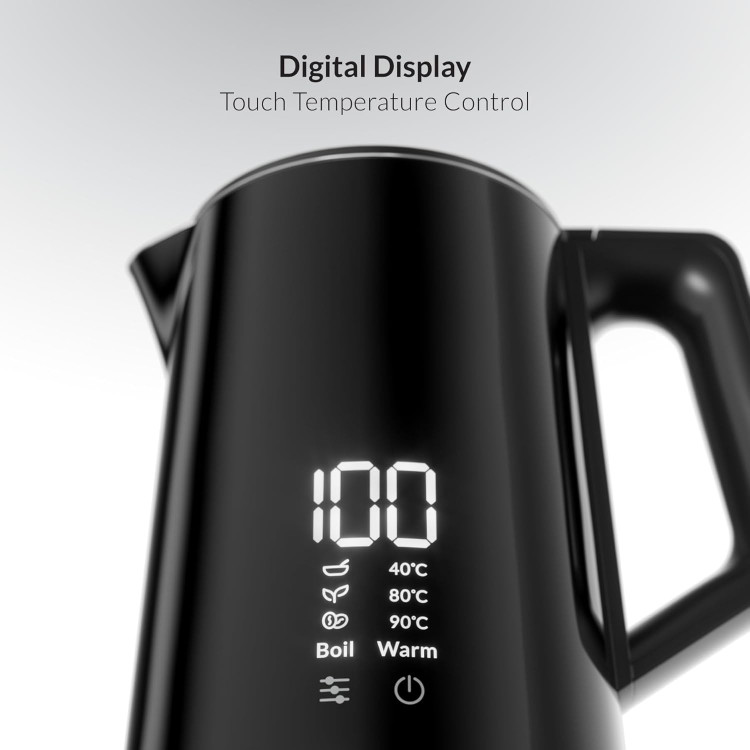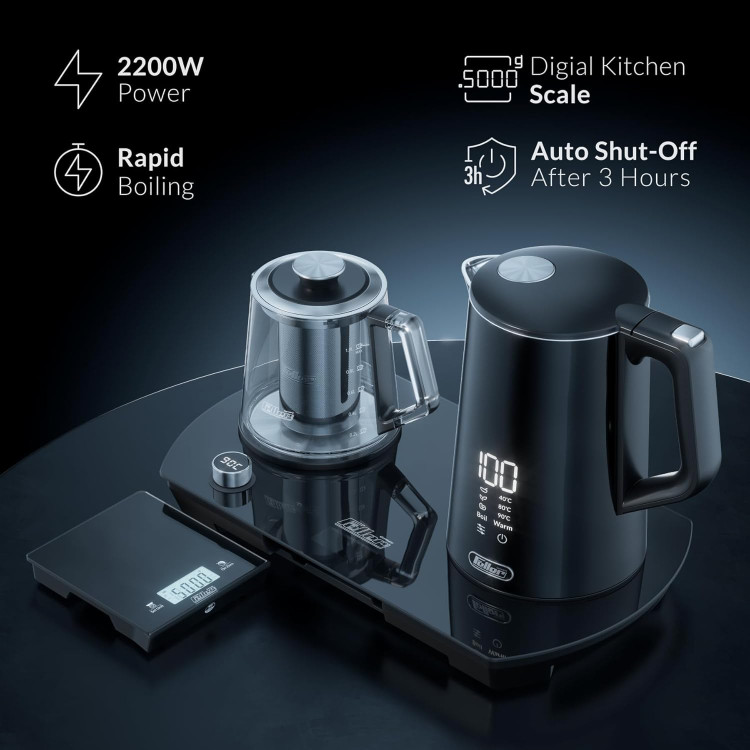 کنترل دمای دوگانه: به شما امکان میدهد دماهای جداگانهای را برای کتری دوجداره ۱.۷ لیتری و صفحه گرمکننده قوری هوشمند تنظیم کنید,تنظیمات راحتی را در دمای ۴۰، ۸۰، ۹۰ و ۱۰۰ درجه سانتیگراد به همراه عملکرد گرم نگه داشتن برای کتری