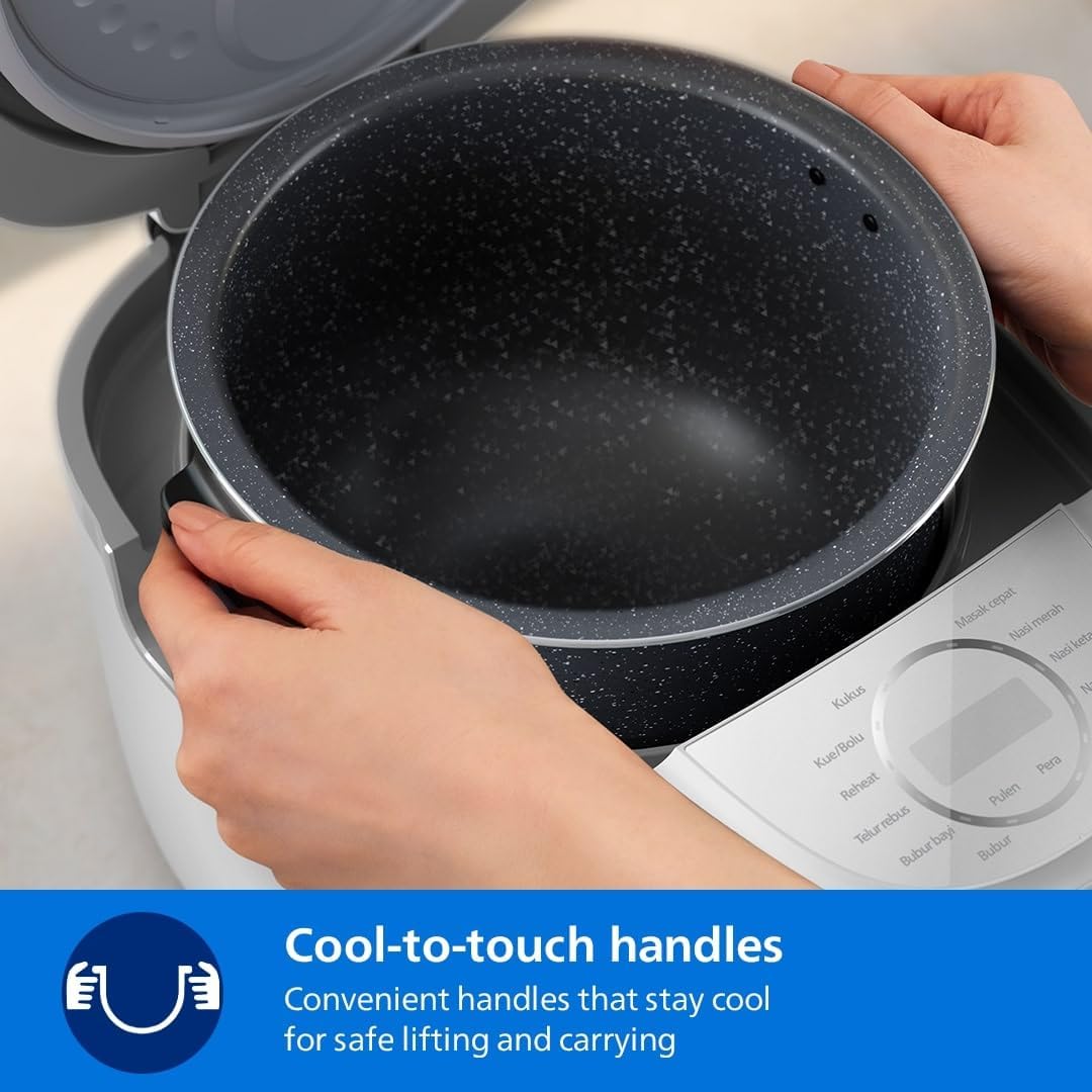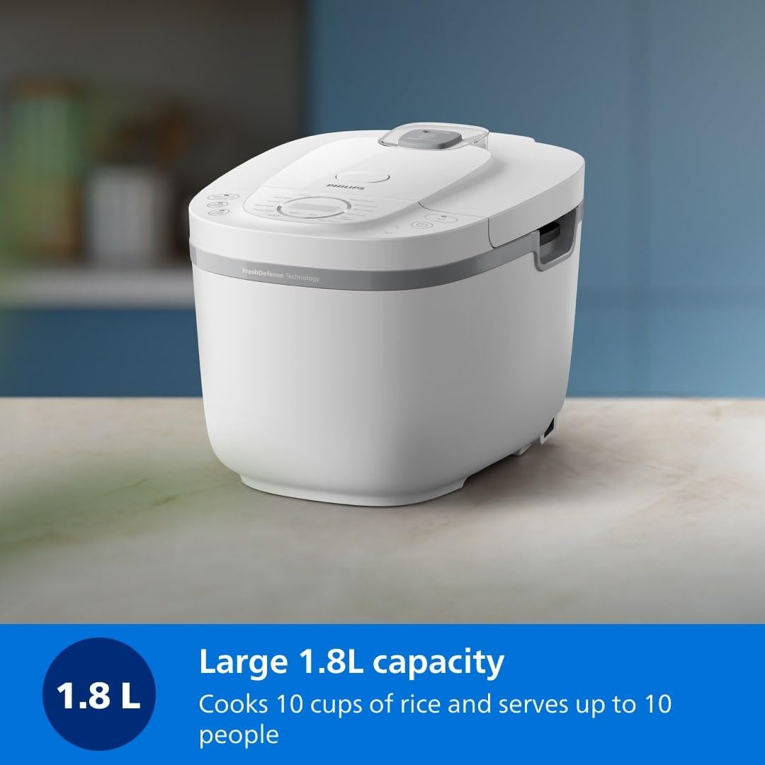 ظرفیت بزرگ 1.8 لیتر برای وعده های غذایی خانوادگی - تا 10 فنجان برنج را به طور همزمان می پزد، مناسب برای خانواده های بزرگ یا آماده سازی غذا. عملکرد راحت گرم نگه داشتن طراوت را تا 48 ساعت حفظ می کند