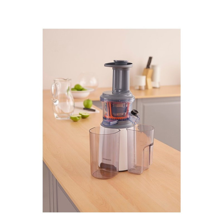 آبمیوهگیری کنوود مدل JMP600WH، که به عنوان عصاره گیر شناخته می شود محصولی از شرکت کنوود است که با طراحی زیبا و مدرنی تولید شده است. جنس بدنه از پلاستیک است که شفافیت و یکپارچهبودن آن زیبایی خاصی به این آبمیوهگیری بخشیده است. عصاره گیر کنوود مدل JMP600WH، از مخزن آبمیوه و مخزن تفاله مناسبی برخودار است. جنس تیغه دستگاه از استیل ضد زنگ است و تیغه مناسبی برای تهیه آبمیوه، اسموتی، دسر یخی و عصارهگیری همراه این دستگاه عرضه شده است. یکی از مشخصات حائز اهمیت این مدل، سرعت پایین هنگام آبمیوهگیری است که میزان عصارهگیری در حداکثر ممکن انجام میپذیرد. با آبمیوه گیری کنوود میتوانید به سادگی میوه های دلخواهتان را به شکل کامل درون دستگاه بیندازید و بعد از چند ثانیه عصاره آن ها با طعم فوق العاده بنوشید. با این دستگاه میتوان آب سیب، انار، هندوانه، گوجه فرنگی، کرفس، کاهو و … را به راحتی گرفت و یک نوشیدنی کاملا طبیعی تهیه کرد. گفتنی است، دهانه عصارهگیر این دستگاه کوچک است. برای سهولت در تمیزکردن دستگاه میتوان بهراحتی و بدون هیچ نگرانی، حین یا بعد از استفاده در محفظه ورودی آبمیوهگیری آب بریزید تا تمیزکردن لوازم آن زمان کمتری از شما بگیرد.