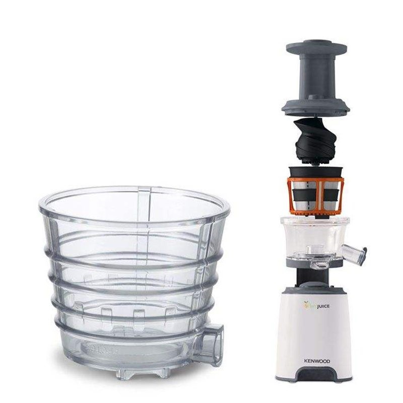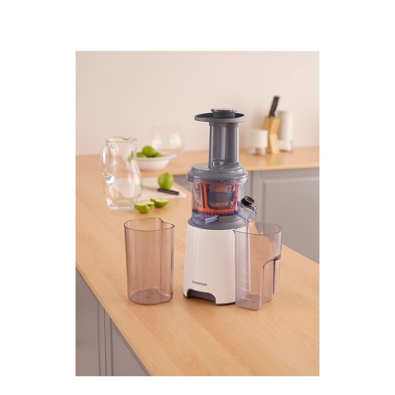 آبمیوهگیری کنوود مدل JMP600WH، که به عنوان عصاره گیر شناخته می شود محصولی از شرکت کنوود است که با طراحی زیبا و مدرنی تولید شده است. جنس بدنه از پلاستیک است که شفافیت و یکپارچهبودن آن زیبایی خاصی به این آبمیوهگیری بخشیده است. عصاره گیر کنوود مدل JMP600WH، از مخزن آبمیوه و مخزن تفاله مناسبی برخودار است. جنس تیغه دستگاه از استیل ضد زنگ است و تیغه مناسبی برای تهیه آبمیوه، اسموتی، دسر یخی و عصارهگیری همراه این دستگاه عرضه شده است. یکی از مشخصات حائز اهمیت این مدل، سرعت پایین هنگام آبمیوهگیری است که میزان عصارهگیری در حداکثر ممکن انجام میپذیرد. با آبمیوه گیری کنوود میتوانید به سادگی میوه های دلخواهتان را به شکل کامل درون دستگاه بیندازید و بعد از چند ثانیه عصاره آن ها با طعم فوق العاده بنوشید. با این دستگاه میتوان آب سیب، انار، هندوانه، گوجه فرنگی، کرفس، کاهو و … را به راحتی گرفت و یک نوشیدنی کاملا طبیعی تهیه کرد. گفتنی است، دهانه عصارهگیر این دستگاه کوچک است. برای سهولت در تمیزکردن دستگاه میتوان بهراحتی و بدون هیچ نگرانی، حین یا بعد از استفاده در محفظه ورودی آبمیوهگیری آب بریزید تا تمیزکردن لوازم آن زمان کمتری از شما بگیرد.