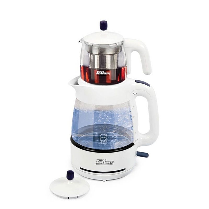 چای ساز فلر مدل TS070S با توان 1800 وات دستگاهی بسیار شیک و کارآمد برای دم کردن چای می باشد که به سرعت آب را می جوشاند و به طور اتوماتیک وارد وضعیت گرم نگهداری می شود تا مصرف انرژی را به اندازه 90 درصد کاهش دهد. در حالت گرم نگه داری، دستگاه آب را در کمترین دما می جوشاند و از جوشیدن غیر ضروری جلوگیری می کند، همچنین باعث می شود چای درون قوری داغ بماند و در مصرف انرژی صرفه جویی شود. جنس قوری و کتری فلر شیشه ای با کیفیت ممتاز شیشه ساخت SCHOTT آلمان و مقاوم در برابر حرارت است. کتری فلر دارای حداکثر ظرفیت 2.5 لیتری است که می توان حجم آب زیادی را بجوشاند. این کتری بدون سیم دارای قابلیت چرخش 360 درجه بر روی پایه می باشد. در دهانه کتری صافی استیل ضدزنگ قرار داده شده است تا از ورود رسوبات آب به داخل قوری جلوگیری کند. با استفاده از دسته بزرگ کتری می توان به سهولت آن را جابجا کرد. برای جوش آوردن آب، کلید روشن/ خاموش کتری را در موقعیت 1 قرار دهید و کلید جوش آوری را بزنید؛ در این حالت چراغ نشانگر قرمز بر روی پایه کتری روشن خواهد شد و آب شروع به جوش آمدن می کند. قوری فلر دارای صافی چای جدا شدنی بزرگ از جنس استیل ضدزنگ می باشد که می توانید به میزان لازم چای در آن بریزید و آن را داخل قوری قرار دهید. درب پلاستیکی قوری دارای دستگیره است که با استفاده از آن می توان درب را به راحتی برداشت. از این دستگاه می توان به عنوان کتری در آشپرخانه استفاده کرد. در این حالت، می توان درپوش کتری را بر روی آن قرار داد تا آب جوش در حالت کمترین میزان مصرف انرژی گرم بماند. به این ترتیب همیشه در آشپزخانه آب جوش آماده است. چایساز TS 070 فلر مجهز به دو ترموستات ایمنی می باشد که در صورت تمام شدن آب کتری، دستگاه را به صورت اتوماتیک خاموش می کنند و پس از اضافه کردن آب، دستگاه شروع به کار می کند.