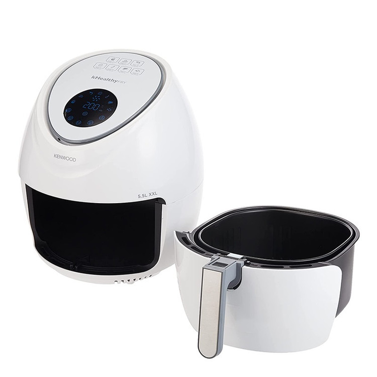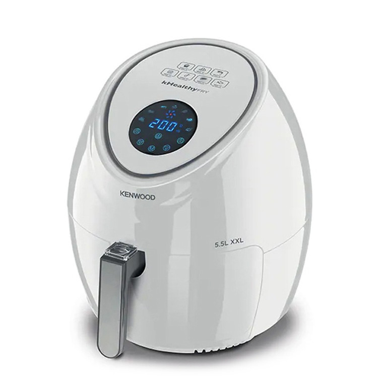 توان مصرفی 1800 واتی و ظرفیت 5.5 لیتری و XXL سرخ کن کنوود مدل KENWOOD HFP50WH موجب شده تا این محصول بی شک برای یک خانواده پر جمعیت انتخابی مناسب به نظر بیاید. این سرخ کن قابلیت پخت کم روغن و یا حتی بدون روغن غذا را دارد بنابراین قادر به تهیه وعده غذایی سالم خواهید بود. وجود 7 برنامه پیشفرض امکان تهیه و طبخ انواع مختلف غذا در سریعترین زمان ممکن را بهراحتی مهیا میکند؛ عملکردهای متنوع این سرخ کن شامل سیب زمینی سرخ شده، پوره سیب زمینی، میگو، کیک ، مرغ، ماهی، گوشت و نان میشود. سرخ کن HFP50WH کنوود به کمک تکنولوژی Hot Rapid Air Circulation با گردش سریع هوای گرم در داخل فضای کاسه، شما را در تهیه غذاهایی تُرد و در عین حال خوش پخت و خوش طعم یاری میدهد. همچنین به سبب این گردش سریع حرارت در سرخ کن، کاهش 80 درصدی میزان روغن مصرفی در فرایند طبخ ایجاد میشود. پنل دستگاه شامل دکمههای لمسی دیجیتالی برای تنظیم برنامههای پخت، تنظیم زمان تا 60 دقیقه و همچنین تنظیم دما در محدوده 80 تا 200 درجه سانتیگراد است که دارای رابط کاربری بسیار آسانی میباشد. قابلیت شستشوی قطعات در ماشین ظرفشویی، پایه لاستیکی برای ثبات بیشتر دستگاه، بدنه پلاستیکی با عایق بندی ضد حرارت، اعلام هشدار در پایان برنامه و خاموش شدن خودکار دیگر امکانات سرخ کن کنوود مدل KENWOOD HFP50WH محسوب میشوند.