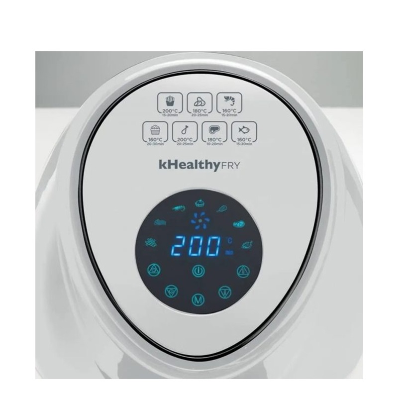 توان مصرفی 1800 واتی و ظرفیت 5.5 لیتری و XXL سرخ کن کنوود مدل KENWOOD HFP50WH موجب شده تا این محصول بی شک برای یک خانواده پر جمعیت انتخابی مناسب به نظر بیاید. این سرخ کن قابلیت پخت کم روغن و یا حتی بدون روغن غذا را دارد بنابراین قادر به تهیه وعده غذایی سالم خواهید بود. وجود 7 برنامه پیشفرض امکان تهیه و طبخ انواع مختلف غذا در سریعترین زمان ممکن را بهراحتی مهیا میکند؛ عملکردهای متنوع این سرخ کن شامل سیب زمینی سرخ شده، پوره سیب زمینی، میگو، کیک ، مرغ، ماهی، گوشت و نان میشود. سرخ کن HFP50WH کنوود به کمک تکنولوژی Hot Rapid Air Circulation با گردش سریع هوای گرم در داخل فضای کاسه، شما را در تهیه غذاهایی تُرد و در عین حال خوش پخت و خوش طعم یاری میدهد. همچنین به سبب این گردش سریع حرارت در سرخ کن، کاهش 80 درصدی میزان روغن مصرفی در فرایند طبخ ایجاد میشود. پنل دستگاه شامل دکمههای لمسی دیجیتالی برای تنظیم برنامههای پخت، تنظیم زمان تا 60 دقیقه و همچنین تنظیم دما در محدوده 80 تا 200 درجه سانتیگراد است که دارای رابط کاربری بسیار آسانی میباشد. قابلیت شستشوی قطعات در ماشین ظرفشویی، پایه لاستیکی برای ثبات بیشتر دستگاه، بدنه پلاستیکی با عایق بندی ضد حرارت، اعلام هشدار در پایان برنامه و خاموش شدن خودکار دیگر امکانات سرخ کن کنوود مدل KENWOOD HFP50WH محسوب میشوند.
