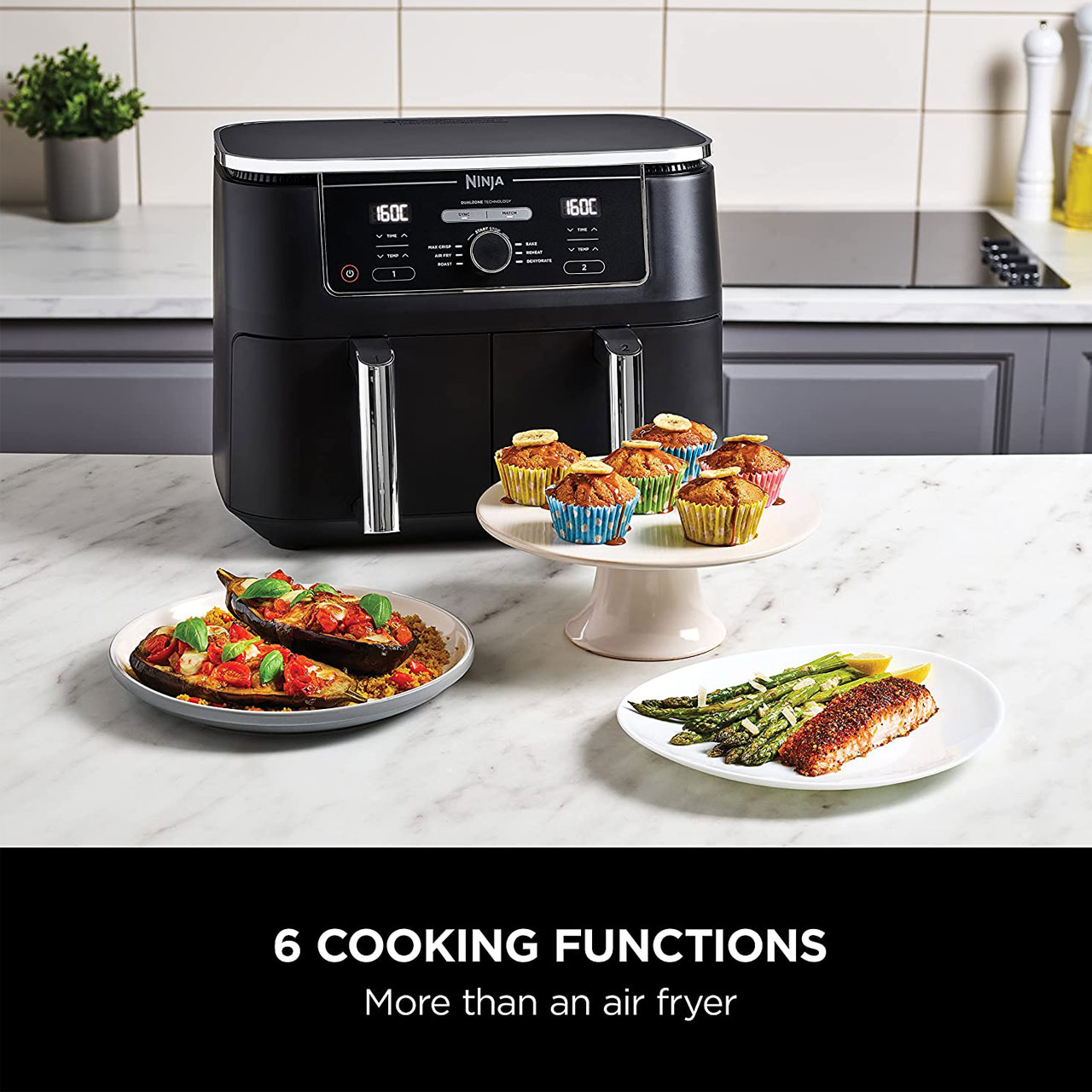 Dual Zone: دو سبد برای پخت جداگانه غذا, پخت 75 درصد سریعتر از فرهای فن دار, حالت Standby, عملکرد MAX CRISP: پخت سریعتر، برای داشتن غذای گرمتر و تردتر، با