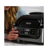 عملکرد دکمهها: دکمههای تعبیه شده در کنترل پنل سرخ کن نینجا مدل AG301 شامل این موارد است: 5 برنامه تهیه غذا اعم از گریل، سرخ کردن، کباب کردن، پخت و خشک کردن مواد غذایی، دکمه خاموش و یا روشن کردن دستگاه، دکمه TEMP برای تنظیم میزان دما و یا تعیین میزان سطح گریل، دکمه TIME برای تنظیم مدت زمان پخت و دکمه شروع و یا توقف کردن فرایند.