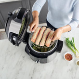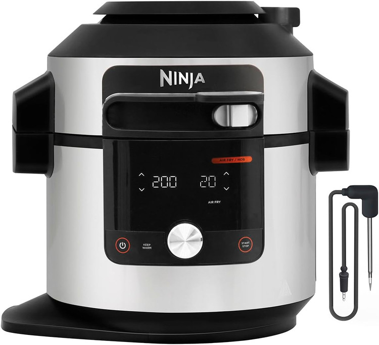 مولتی کوکر نینجا مدل OL750 نسل جدید از لوازم پخت و پز این برند معتبر است که شما را در انجام امور متنوع آشپزی همراهی میکند. این دستگاه قدرتمند با توان ۱۷۶۰ وات ۳ فرایند اصلی پخت یعنی زودپز، سرخ کن و آرامپز را بهبهترین شکل بهانجام میرساند. علاوه بر این، ۵ برنامه مختص فرایند ترکیبی پخت با بخار، گریل، پختن، خشک کردن مواد غذایی، تفت دادن، بخارپز، ماست ساز و گرم نگهدارنده دیگر عملکردهای این محصول را تشکیل میدهند. فرایندهای اصلی ذکر شده با حرکت دادن دکمه اسلایدر روی دستگاه انتخاب شده و پس از آن عملکردهای دستهبندی مربوط به آن نیز با استفاده از کنترلکننده چرخشی و دکمههای لمسی قابل اعمال خواهند بود. یکی دیگر از ویژگیهای ارزشمند این دستگاه برخورداری از قطعه کاوشگر میزان پخت مواد غذایی است. در حقیقت بهلطف تعبیه این قطعه هیچگونه حدس و گمانی در مورد میزان پخت مواد غذایی باقی نمیماند و با کنترل مستمر دمای غذا در حین فرایند، غذایی کاملا مطابق با سلیقه پخت کاربر در اختیار او قرار میدهد. به ادعای کمپانی نینجا دیگر امتیاز ارزشمند این دستگاه سرعت بالا در انجام عملکردهای متنوع آشپزی است. به گفته این شرکت بهکمک فرایند آشپزی با بخار این مولتی کوکر در مدت کمتر از ۶۰ دقیقه قادر به پخت یک مرغ بریان کامل خواهید بود یا از طریق انتخاب سایر عملکردها ظرف مدت کمتر از ۳۰ دقیقه وعده غذایی خانوادگی موردنظر خود را آماده خواهید کرد. از طریق انتخاب برنامه زودپز این محصول، تا میزان ۷۰ درصد سریعتر به نسبت روشهای سنتی پخت به نتیجه دلخواه خود دست پیدا میکنید. سیستم گردش هوای داغ درست شبیه به مکانیزم یک دستگاه سرخ کن در این مولتی کوکر نیز تعبیه شده است. از همین بابت فرایند سرخ کردن مواد غذیی نیز با مصرف کمترین میزان روغن و بهگونهای کاملا سلامت قابل انجام خواهد بود. مخزن پخت این مولتی کوکر با دارا بودن ظرفیت ۷.۵ لیتری حجم مناسبی از مواد غذایی را در خود جای میدهد. این ظرفیت معادل تهیه وعده غذایی برای جمع ۶ نفره یا پخت یک مرغ کامل ۳ کیلوگرمی است. متریال ساخت کاسه پخت از سرامیک نانو بوده که ضمن حفظ اصالت طعم مواد غذایی، شستشوی آسان و بدون دردسر را نیز موجب میشود. علاوه بر این کاسه دیگر اقلام جانبی دستگاه شامل دو سینی توری فلزی و یک پایه نگهدارنده دو طبقه برای انجام فرایندهای گریل، بخارپز کردن و پخت و یک عدد پروب یا کاوشگر سنجش میزان پخت مواد غذایی میشود. گفتنی است امکان شستشوی قطعات جانبی دستگاه در ماشین ظرفشویی وجود دارد.