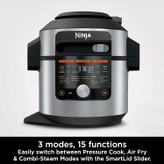 سه عملکرد اصلی پخت و پز خود در مولتی کوکر نینجا مدل OL750 را بهآسانی انتخاب کنید. طراحی نوآورانه دستگاه با تعبیه یک اسلایدر هوشمند این امکان را فراهم میکند تا فرایندهای اصلی یعنی زودپز، پخت ترکیبی با بخار و سرخ کردن را انتخاب کنید. پس از آن و با انتخاب هر حالت، طیف گستردهای از عملکردهای متنوع آشپزی در اختیار شما قرار میگیرد. 5 روش پخت ترکیبی با بخارپز، زودپز با امکان انتخاب نوع تخلیه بخار و برنامههای پیشفرض دیگر از جمله سرخ کردن، گریل، پختن، خشک کردن مواد غذایی، ساخت خمیر، تفت دادن، بخارپز کردن، آرام پز و تهیه ماست دیگر امکانات این دستگاه همهکاره است.