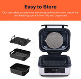 درون جعبه دستگاه علاوه بر قطعه اصلی، لوازم جانبی بسیار کارا قرار دارد. ظرف ۸.۵ لیتری پخت، سبد ۶ لیتری مختص سرخ کردن، صفحه مختص گریل به ابعاد ۳۱ در ۲۴.۵ سانتیمتر، دماسنج هوشمند، قطعه اسپلتر محافظ برای جلوگیری از انتشار دود و بو به فضای آشپزخانه و برس نظافت، لوازم جانبی این دستگاه را تشکیل میدهد.