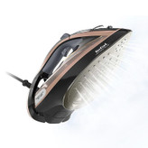 اتو بخار تفال مدل TEFAL FV9845، با توان مصرفی 3200 وات با بخار دهی مداوم 60 گرم در دقیقه از سری اتو بخارهای دستی برند تفال است. ظرفیت مخزن آب این اتو بخار 350 میلی لیتر بوده و از سیستم بخاردهی اتوماتیک بهره میبرد. قابلیت anti-drip این اتو بخار از چکه کردن آب از کف اتو و احتمال پخش شدگی رنگ پارچه جلوگیری میکند. با برخورداری اتو TEFAL FV9845 از سیستم ایمنی auto-off، اگر در حین فرایند اتوکشی دستگاه را رها کنید، اتو در حالت قرارگیری روی پاشنه ظرف 8 دقیقه و در حالت قرار گیری روی صفحه اتو فقط در ظرف 30 ثانیه به طور اتوماتیک خاموش میشود. مکانیزم کفی Durilium Airglide Autoclean فرایند اتو کشیدن پارچه را بسیار روان میکند و نیز موجب انتشار بخار بهینه در فرایند اتوکشی میشود. پوشش کاتالیزوری Autoclean ابداعی شرکت تفال، از بروز لکه بر روی کفی دستگاه جلوگیری کرده و موجب افزایش طول عمر کفی اتو بخار میشود. با اینکه خروجی مداوم و ثابت مقدار 60 گرم در دقیقه بخار قادر به از بین بردن چین و چروک های پارچه میباشد، اما بخاردهی لحظه ای با اعمال بخار 260 گرم در ثانیه ردی از چین و چروک های پارچه های ضخیم تر نیز نخواهد گذاشت. وجود فیلتر Micro-Calc بر روی اتو بخار FV9845 از ایجاد رسوب و لکه بر روی پارچه های کتان جلوگیری میکند.