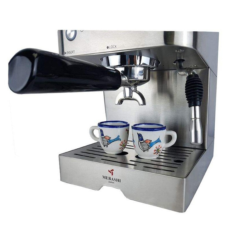 اسپرسوساز مباشی مدل MEBASHI ME-ECM2014، با توان مصرفی 1140 وات و میزان فشار پمپ 20 وات از تولیدات این برند ژاپنی است. طراحی کلاسیک زیبای این اسپرسوساز بیش از هر موضوعی جلب توجه میکند. رنگ استیل این دستگاه متناسب با سبک های متنوع دکوراسیون آشپزخانه عرضه میشود. بدنه این اسپرسوساز از جنس استیل ضد زنگ است و از مقاومت قابل قبولی برخوردار میباشد. وجود پمپ ایتالیایی قدرتمند با فشار 20 بار امکان تهیه انواع فرم کف شیر را برای اسپرسوساز ECM2014 مباشی مهیا کرده است. بنابراین علاوه بر تهیه قهوه و حتی شیر گرم و آب جوش، امکان تهیه نوشیدنی هایی ترکیبی شیر و قهوه همچون کافه لاته، موکا و کاپوچینو نیز وجود دارد. همچنین وجود بویلر قوی و ریخته گری شده از آلیاژ آلومینیوم، سیستم دم آوری جذابی را برای این اسپرسوساز فراهم کرده است. تعداد نازل قهوه 2 عدد بوده که با توجه به ظرفیت مخزن آب 1.5 لیتری و تک مخزنه بودن اسپرسوساز ECM2014 مباشی، ظرفیت تهیه تعداد حداکثر 2 فنجان قهوه را دارا است. قابلیت قطع اتوماتیک فرایند با گذر از زمان 25 دقیقه، سیستم حفاظت در برابر افزایش درجه حرارت و فشار بالا و وجود رابط کاربری ساده به صورت دکمه ای و ولومی برای روشن و خاموش کردن دستگاه و یا تنظیم میزان بخار از دیگر مزایای اسپرسوساز مباشی مدل MEBASHI ME-ECM2014 میباشد.