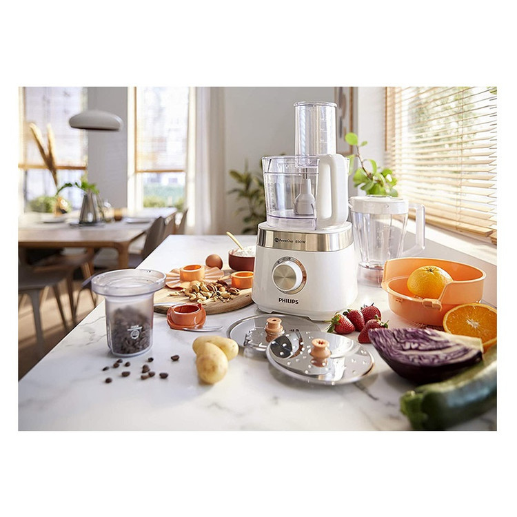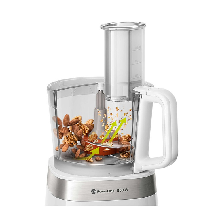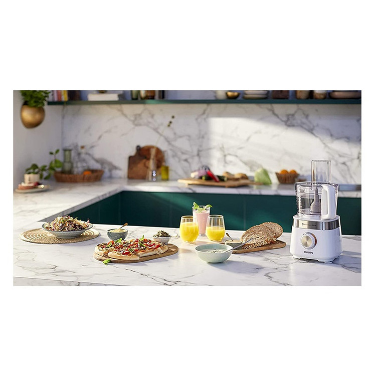 غذاساز ماشینهای همهکاره یک آشپزخانه بهحساب میآیند. غذاساز فیلیپس مدل PHILIPS HR7530 در قالب یک پکیج پاسخگوی بخش اعظمی از نیازهای روزمره و ضروری شما بهمنظور تهیه مواد غذایی متنوع خواهد بود. این دستگاه با بهرهگیری از توان مصرفی 850 وات و به لطف مکانیزم PowerChop با انجام فرایند مرکب از شکل و زاویه قرارگیری تیغهها و کاسه ارگونومیک قادر است بالاترین سطح عملکرد را برای اعمال نتایجی بینظیر به انجام برساند. تیغههای بینظیر و S شکل از جنس استیل ضدزنگ با دوام و استحکام بالا انجام فرایندهایی مداوم با طول عمر بالا را متضمن میشود. با کمک این هیولای غذاساز All-in-One قادر به انجام 31 عملکرد متنوع تهیه مواد غذایی خواهید بود؛ عملکردهای غذاساز HR7530 شامل مخلوطکن، آب مرکبات گیری، آسیاب، خردکن، خمیرزن، رنده و برش ورقهای میشود. دهانه کاسه غذاساز با ابعاد XXL این امکان را فراهم کرده تا میوههایی چون سیب را به طور کامل و بدون نیاز به برش وارد دستگاه کنید. ظرفیت کارکرد این کاسه 1.5 لیتر میباشد. همچنین پارچ مخلوطکن این غذاساز با ظرفیت کارکرد 1 لیتر و برخورداری از ساختی مطلوب امکان تهیه انواع نوشیدنی و اسموتی را بهآسانی مهیا میکند. دو دیسک رنده ریز و ورقهای نازک، ابزار خامهزن، آب مرکبات گیری و آسیاب کوچک دیگر اجزای تشکیلدهنده این ماشین غذاساز محسوب میشوند. گفتنی است تمامی بخشهای پلاستیکی این غذاساز که در ارتباط با مواد غذایی قرار دارند عاری از ماده شیمیایی مضر BPA بوده بنابراین جای هیچگونه نگرانیای بابت سلامت مواد غذایی تهیه شده نخواهد بود. غذاساز HR7530 دارای امکان تنظیم در دو سرعت به انضمام عملکرد پالس میباشد. نکته جالب در ساخت برخی اجزای این دستگاه اعم از خمیرزن، خردکن و همچنین آب مرکبات گیری بهصورت رنگی (نارنجی و یا قرمز) و مطابق با رنگ یکی از دو سرعت تعبیه شده بر روی پنل دستگاه است. این موضوع برای سهولت کاربری و راهنمایی مصرفکنندگان جهت انتخاب سرعت مناسب و مطابق با آن ابزار و فرایند خاص در نظر گرفته شده است. عملکرد پالس نیز با ارائه بالاترین سطح توانمندی از موتور آماده است تا سرسختترین فرایندهای ممکن را بهآسانی به انجام برساند. طراحی جمعوجور و اشغال فضای کوچک در آشپزخانه و امکان شستشوی قطعات در ماشین ظرفشویی دیگر امکانات غذاساز فیلیپس مدل PHILIPS HR7530 به شمار میآید.