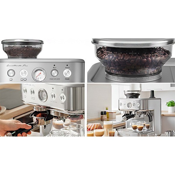 مشخصات کلی ظرفیت ۱.۵ liter توان مصرفی ۱۷۷۰ w رنگ استیل کشور سازنده چین نوع دستگاه اسپرسوساز دستی توان مصرفی 1350 وات میزان فشار بخار 15 بار قابل استفاده از قهوه – پودر قهوه نوشیدنی های قابل تهیه اسپرسو – لاته ماکیاتو – کاپوچینو – آمریکانو – کافه کرما سیستم دم آوری بویلر تحت فشار تعداد فنجان آماده سازی 1-2 فنجان تعداد نازل قهوه 2 عدد تعداد محفظه قهوه 2 عدد ظرفیت مخزن آب 1.5 لیتر قابلیت جداشدن مخزن آب دارد مخزن پودر قهوه ندارد قابلیت استفاده از کپسول ندارد سیستم کاپوچینوساز دارد مخزن شیر ندارد قابلیت تولید کف شیر دارد نازل بخار دارد قابلیت تنظیم ارتفاع خروجی ندارد تنظیم دمای هر نوشیدنی ندارد کاهش زمان داغ کردن: آماده شدن فنجان نوشیدنی در یک چشم بهم زدن دارد قابلیت دسترسی جداگانه 1 فنجان اسپرسو – 2 فنجان اسپرسو – قهوه – آب داغ نوع فیلتر 2 فیلتر برای یک یا دو فنجان قابلیت آسیاب کردن قهوه دارد تنظیم اندازه آسیاب ندارد نوع کنترل دکمه ای و چرخشی سینی چکه گیر دارد سیستم نظافت سیستم نظافت دستی خاموش شدن خودکار دارد قفل کودک ندارد تایمر ندارد هشدار صوتی ندارد هشدار خالی بودن مخزن آب دارد کلید روشن / خاموش دارد قابلیت شستشوی قطعات در ماشین ظرفشویی دارد لوازم جانبی تامپر پودر قهوه (فشاری), ظرف شیر, یک عدد پرتافیلتر, یک عدد سبد پرتافیلتر تک شات, یک عدد سبد پرتافیلتر دو شات جنس بدنه استیل نمایشگر دارد صفحه کنترل لمسی ندارد نشانگر روشن بودن دستگاه دارد سایر مشخصات قابلیت تهیه کف شیر به صورت دستی