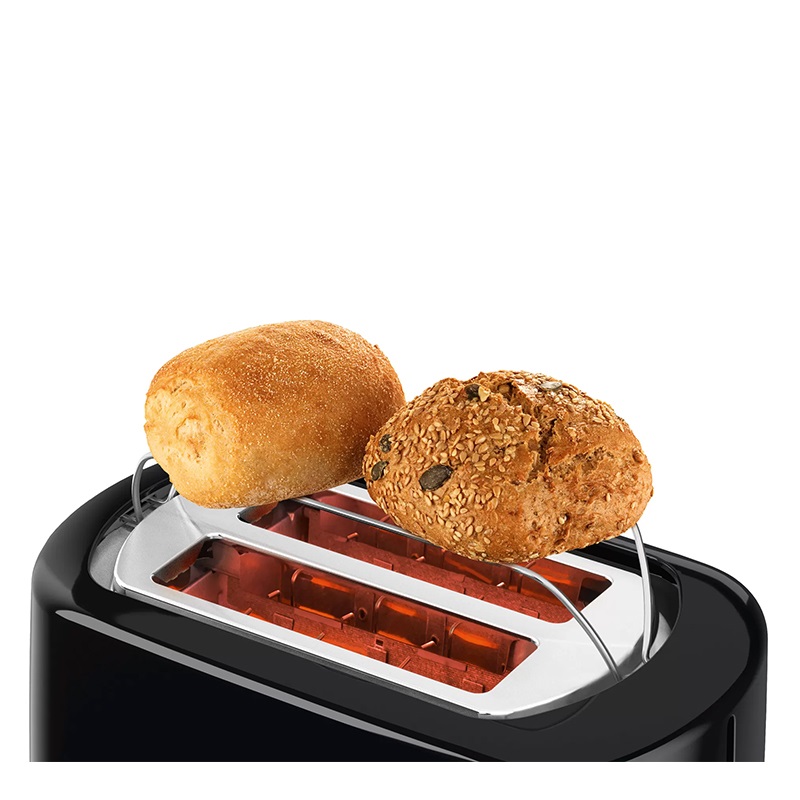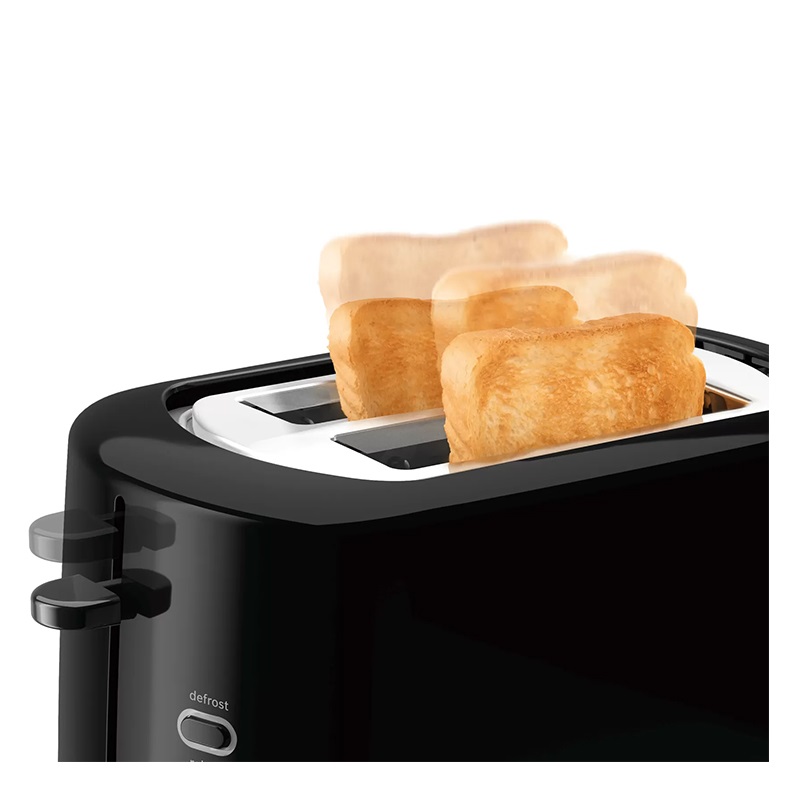 توستر TAT7403 با طراحی ساخت جمعوجور، برخورداری از رابط کاربری ارگونومیک و کارایی سطح بالا از تولیدات باکیفیت برند محبوب بوش به حساب میآید. میزان نیاز بالا به تهیه سریع نان در وعدههای روزانه به خصوص صبحانه سبب شده لزوم استفاده از توستر در هر محیط اعم از منزل و محل کار بیش از همیشه ضرورت پیدا کند. بهرهگیری از توان مصرفی 800 وات با در اختیار داشتن سیستم گرمایش المنتی تجربهای لذت بخش را در تهیه نان برشته دلخواه در اختیار شما قرار میدهد. تعداد درگاه قرارگیری نان در توستر TAT7403 بوش 2 عدد است که امکان قرارگیری دو قطع برش نان در خود را دارد. همچنین میتوانید میزان برشته شدن نان را در 7 سطح متفاوت به مقدار دلخواه خود به وسیله کنترلر چرخشی تعیین کنید. عملکردهای این توستر علاوه بر برشته کردن نان شامل یخ زدایی از نان منجمد و همچنین گرم کردن مجدد نان نیز میشود. فرایند گرم کردن مجدد انواع نان و شیرینی از طریق قرارگیری این مواد خوراکی بر روی میلههای فلزی قابل جابجایی بر روی درگاه انجام میشود. با استفاده از دکمه Stop خواهید توانست فرایند دستگاه را در هر زمان دلخواه متوقف کنید. طراحی ساخت بدنه توستر بوش مدل TAT7403 با بکارگیری متریال پلاستیک، علاوه بر ایجاد جلوه بصری چشمنواز، استحکام و دوام دستگاه را نیز موجب شده است. بخشهای پلاستیکی به کار رفته در این توستر فاقد ماده شیمیایی مضر BPA بوده که این امر سلامت نان تهیه شده را متضمن میشود. وجود سینی کشویی جمع کننده نان نظافت توستر بوش مدل TAT7403 پس از هربار انجام فرایند را به آسانی امکانپذیر کرده است. تعبیه محفظه ذخیرهسازی کابل برق موجب شده با تعیین میزان طول موردنیاز از سیم و قرارگیری مابقی آن در این محفظه، نظم و همچنین ایمنی قرارگیری دستگاه در محیط استفاده از آن برقرار شود. برخورداری از پایه ضدلغزش از حرکت توستر در حین انجام فرایند جلوگیری میکند.