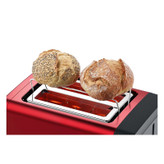 توستر بوش مدل TAT4P424 یک محصول توانمند برای یخزدایی، برشته کردن و جهت گرم کردن مجدد نان وعدههای مختلف غذایی شما است. این دستگاه یک انتخاب ایدهآل جهت ترد و تازه کردن نانهای صبحانه شما است. بوش یک نام شناخته شده و مورد اعتماد مردم است زیرا همیشه برای محصولات خود از بهروزترین طراحیها و تکنولوژیها استفاده میکند. توان مصرفی 970 واتی این توستر به شما در گرم کردن انواع نان با بافتهای گوناگون در ضخامتهای مختلف کمک میکند تا با استفاده از آن از یک نان خوشمزه و لذید نهایت لذت را ببرید. با بکارگیری سیستم المنت گرمایشی سطح بزرگ و قابلیت تغییر میزان دما در 6 سطح مختلف اقدام به گرم کردن و تست کردن نان آنطور که باب میلتان است کنید. سیستم برشته کردن نان به صورت متمرکز برای برشته شدن یکسان هر دو طرف نان از جمله مزایای تولید این محصول است. تعداد درگاه قرارگیری نان 2 عدد است تا با استفاده از آن 2 عدد برش نان را برای خود تست کنید. با استفاده از درگاه نگهداری نان و دکمه تعبیه شده اقدام به قرار دادن نان در درون دستگاه کنید تا بتوانید از یک نان برشته و تازه نهایت لذت را ببرید. بعد از اتمام فرآیند با استفاده از همان دکمه اقدام به خارج کردن نانهای تست شده خود کنید و یا منتظر بشوید تا به صورت خودکار بعد از اتمام فرآیند نانها برای شما به صورت خودکار خارج شود. نانها به اندازه استاندارد بالا آمده تا به آسانی اقدام به برداشتن آنها کنید. یک کنترل پنل ساده با کلید چرخشی با 6 حالت کنترل و تنظیم میزان برشته شدن نان، دکمه توقف با نشانگر LED و دکمه یخ زدایی نان با نشانگر LED از جمله دکمههای تعبیه شده برای این محصول است. برای جلوگیری از بروز هرگونه حادثه شرکت بوش از قابلیت خاموش شدن خودکار و یک پایه ضد لغزش پلاستیکی استفاده کرده است تا بهوسیله آن یک تجربه عالی را به دور از هرگونه نگرانی تجربه کنید. محفظه برای جمع کردن کابل برق به شما در حفظ و نگهداری این محصول کمک میکند و از پاره شدن و آسیب رسیدن به آن جلوگیری میکند.