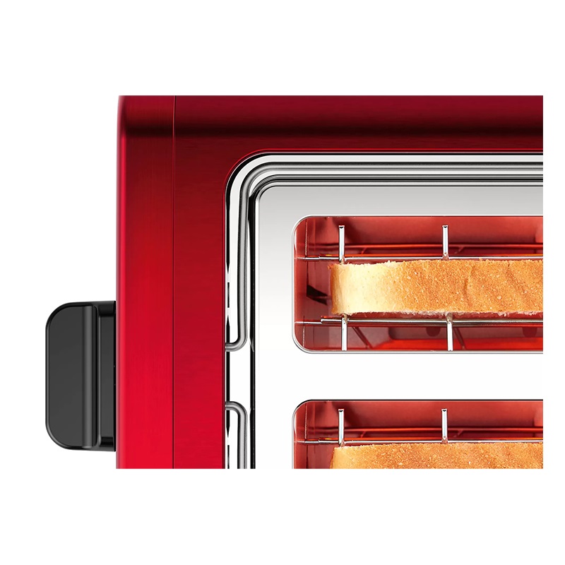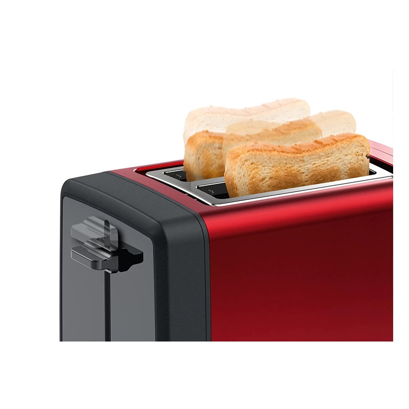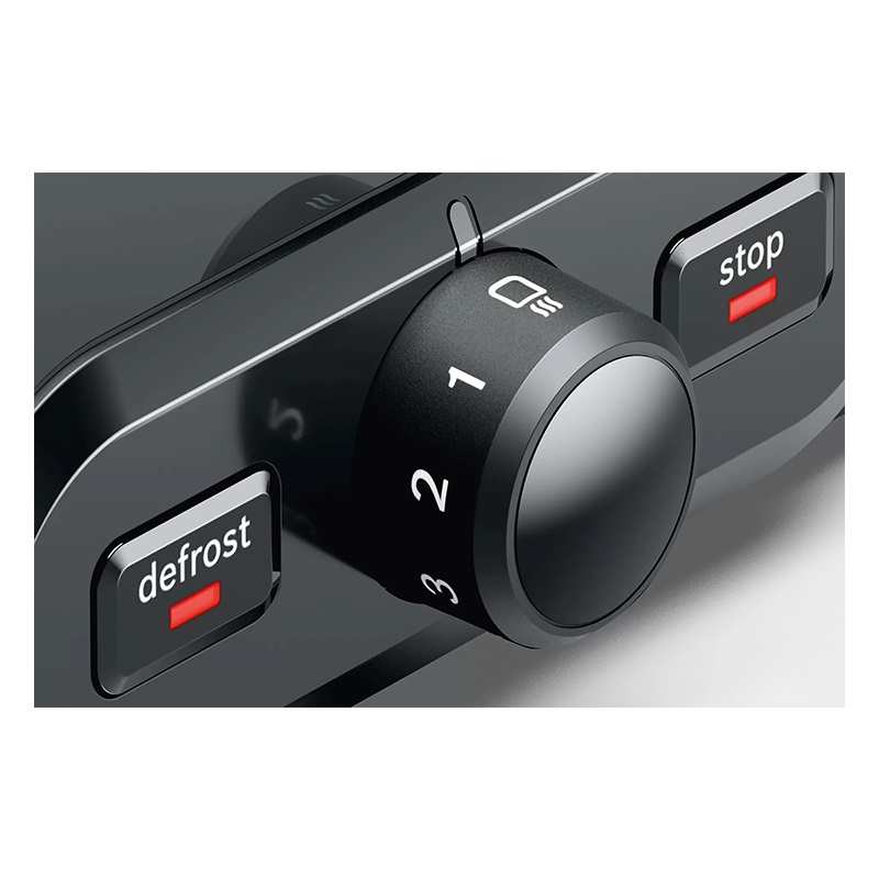 توستر بوش مدل TAT4P424 یک محصول توانمند برای یخزدایی، برشته کردن و جهت گرم کردن مجدد نان وعدههای مختلف غذایی شما است. این دستگاه یک انتخاب ایدهآل جهت ترد و تازه کردن نانهای صبحانه شما است. بوش یک نام شناخته شده و مورد اعتماد مردم است زیرا همیشه برای محصولات خود از بهروزترین طراحیها و تکنولوژیها استفاده میکند. توان مصرفی 970 واتی این توستر به شما در گرم کردن انواع نان با بافتهای گوناگون در ضخامتهای مختلف کمک میکند تا با استفاده از آن از یک نان خوشمزه و لذید نهایت لذت را ببرید. با بکارگیری سیستم المنت گرمایشی سطح بزرگ و قابلیت تغییر میزان دما در 6 سطح مختلف اقدام به گرم کردن و تست کردن نان آنطور که باب میلتان است کنید. سیستم برشته کردن نان به صورت متمرکز برای برشته شدن یکسان هر دو طرف نان از جمله مزایای تولید این محصول است. تعداد درگاه قرارگیری نان 2 عدد است تا با استفاده از آن 2 عدد برش نان را برای خود تست کنید. با استفاده از درگاه نگهداری نان و دکمه تعبیه شده اقدام به قرار دادن نان در درون دستگاه کنید تا بتوانید از یک نان برشته و تازه نهایت لذت را ببرید. بعد از اتمام فرآیند با استفاده از همان دکمه اقدام به خارج کردن نانهای تست شده خود کنید و یا منتظر بشوید تا به صورت خودکار بعد از اتمام فرآیند نانها برای شما به صورت خودکار خارج شود. نانها به اندازه استاندارد بالا آمده تا به آسانی اقدام به برداشتن آنها کنید. یک کنترل پنل ساده با کلید چرخشی با 6 حالت کنترل و تنظیم میزان برشته شدن نان، دکمه توقف با نشانگر LED و دکمه یخ زدایی نان با نشانگر LED از جمله دکمههای تعبیه شده برای این محصول است. برای جلوگیری از بروز هرگونه حادثه شرکت بوش از قابلیت خاموش شدن خودکار و یک پایه ضد لغزش پلاستیکی استفاده کرده است تا بهوسیله آن یک تجربه عالی را به دور از هرگونه نگرانی تجربه کنید. محفظه برای جمع کردن کابل برق به شما در حفظ و نگهداری این محصول کمک میکند و از پاره شدن و آسیب رسیدن به آن جلوگیری میکند.
